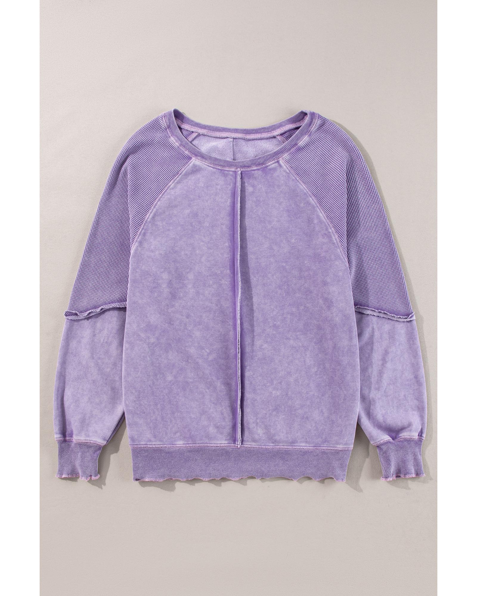 Orchid Petal Solid Waffle Knit Patchwork Raglan Sleeve Sweatshirt – XL