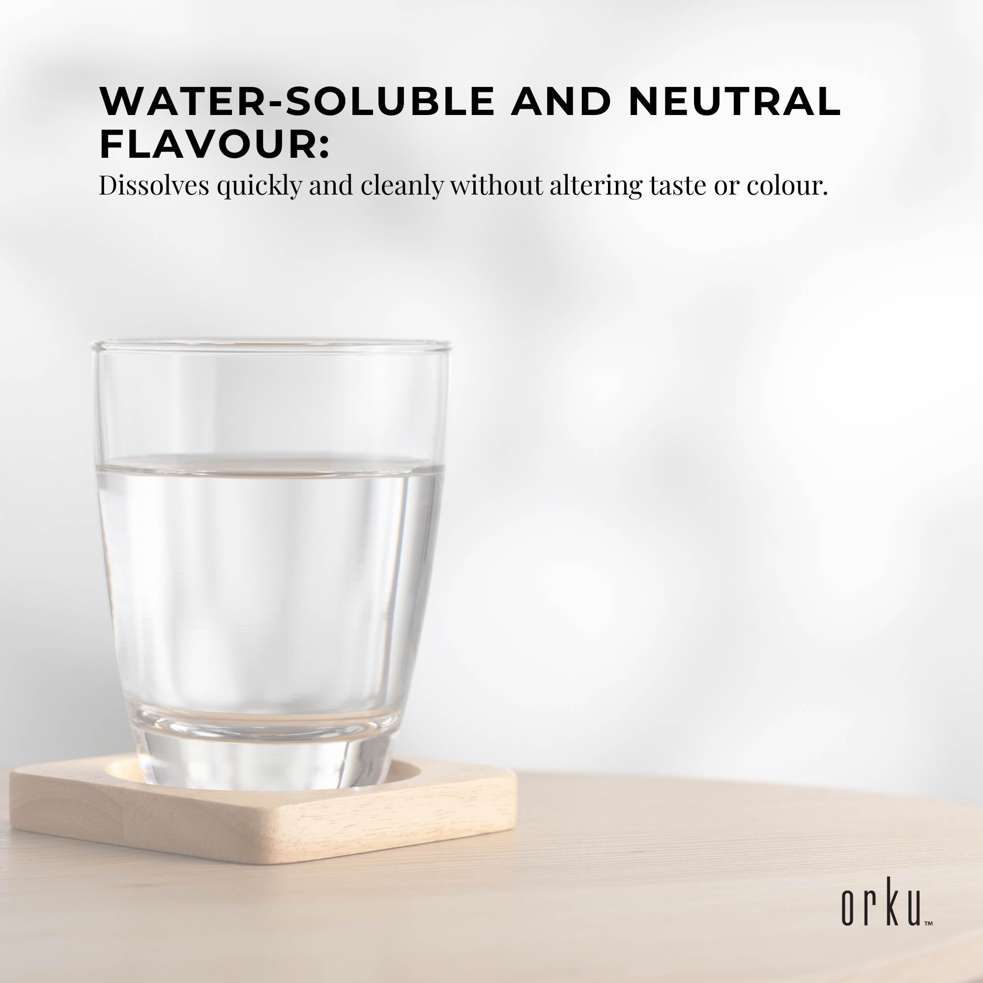 • Water-Soluble and Neutral Flavour: Dissolves quickly and cleanly without altering taste or colour.