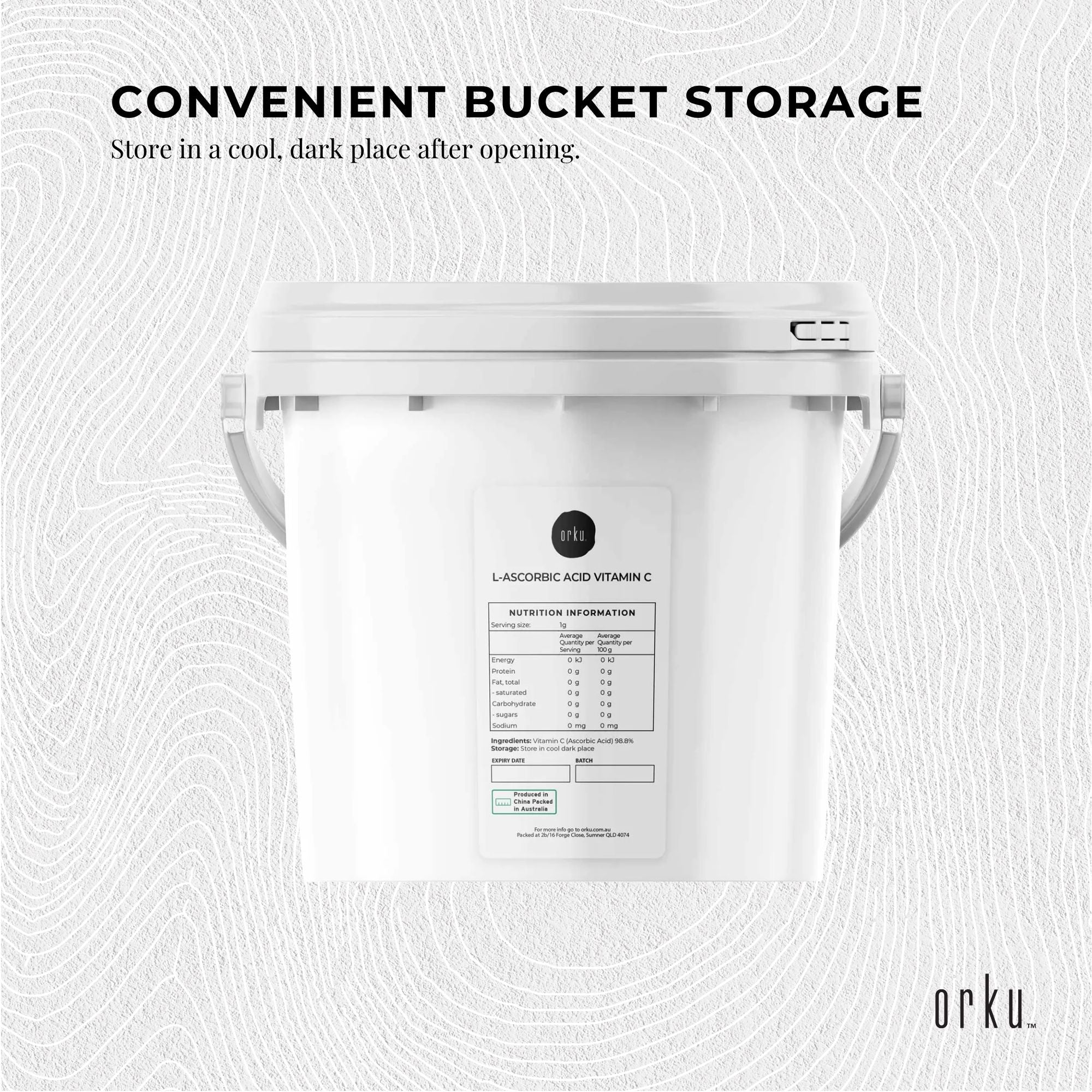 Orku 5Kg Vitamin C Powder in Tub Pure L-Ascorbic Acid – USP Grade Non-GMO