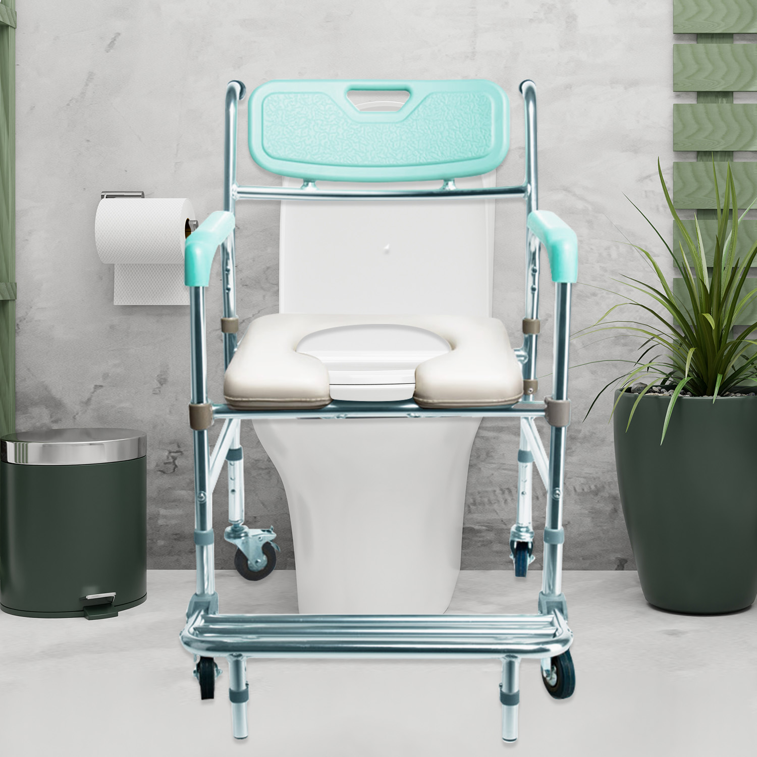 Orthonica Commode Chair With Castors Aluminium Frame Footrest Soft Push Handles