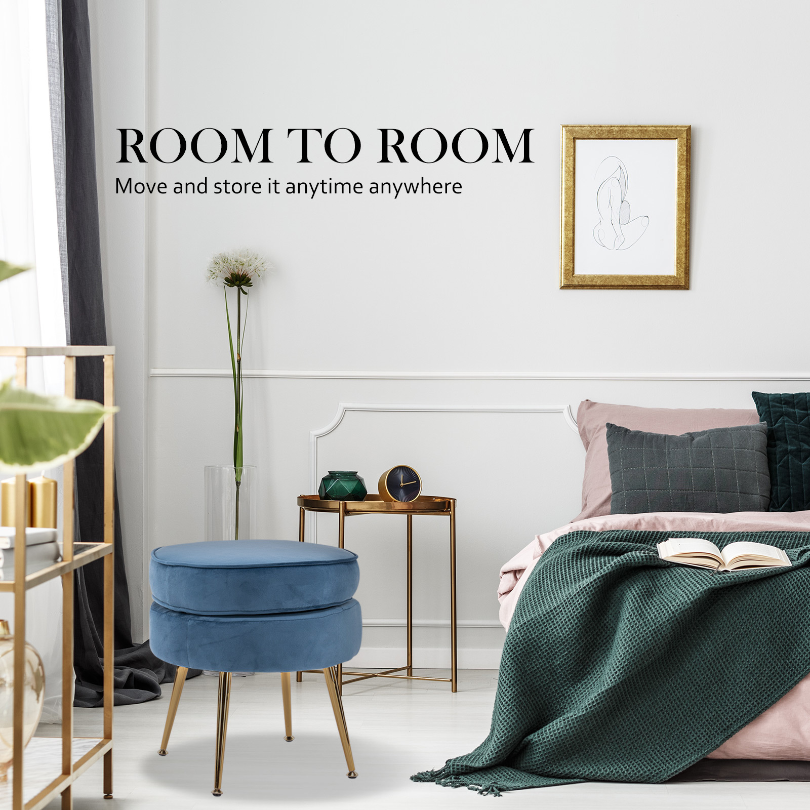• 1 x Velvet Round Foot Stool