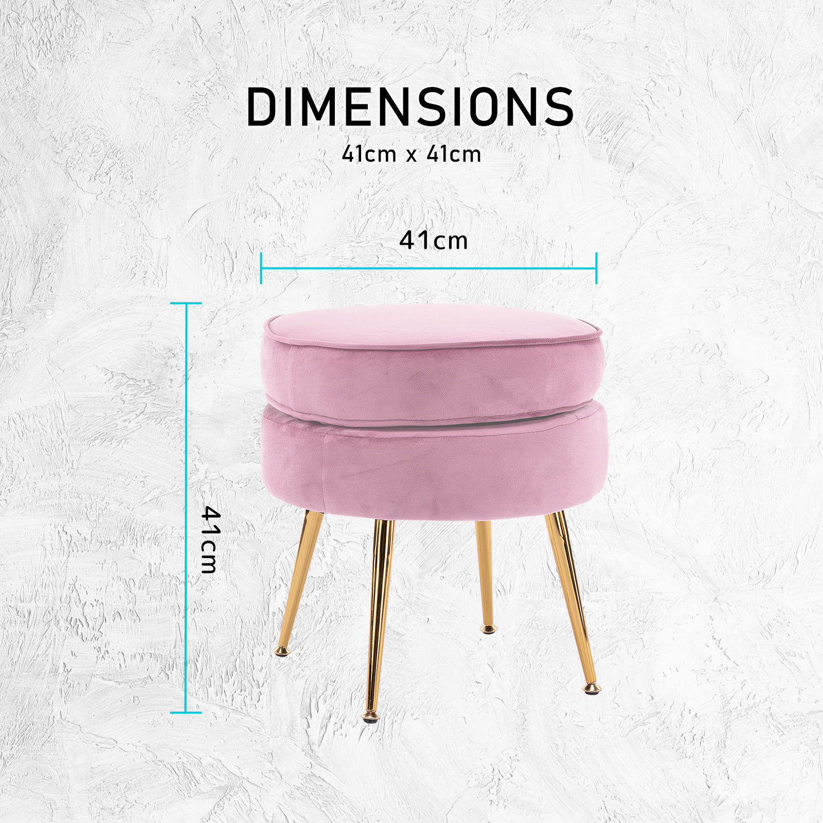 La Bella Ottoman Foot Stool Velvet Fabric Metal Leg Round – Pink