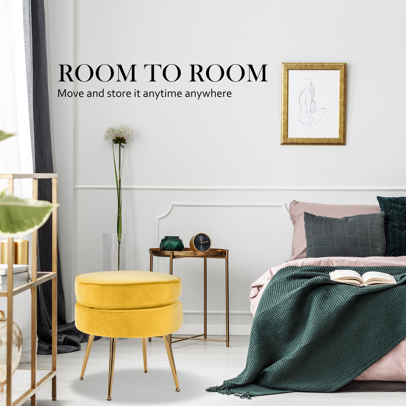 - 1 x Velvet Round Foot Stool