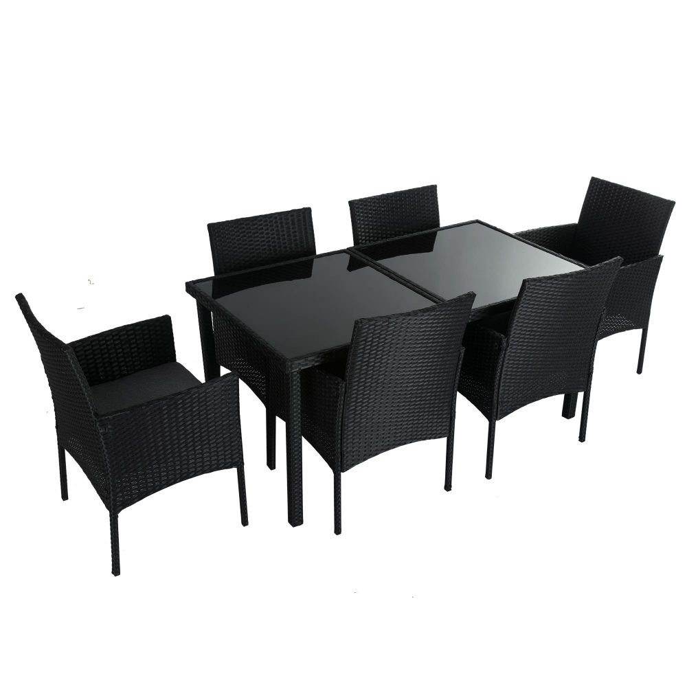 Outdoor Minimalist Black Wicker 6-Seater Dining Set