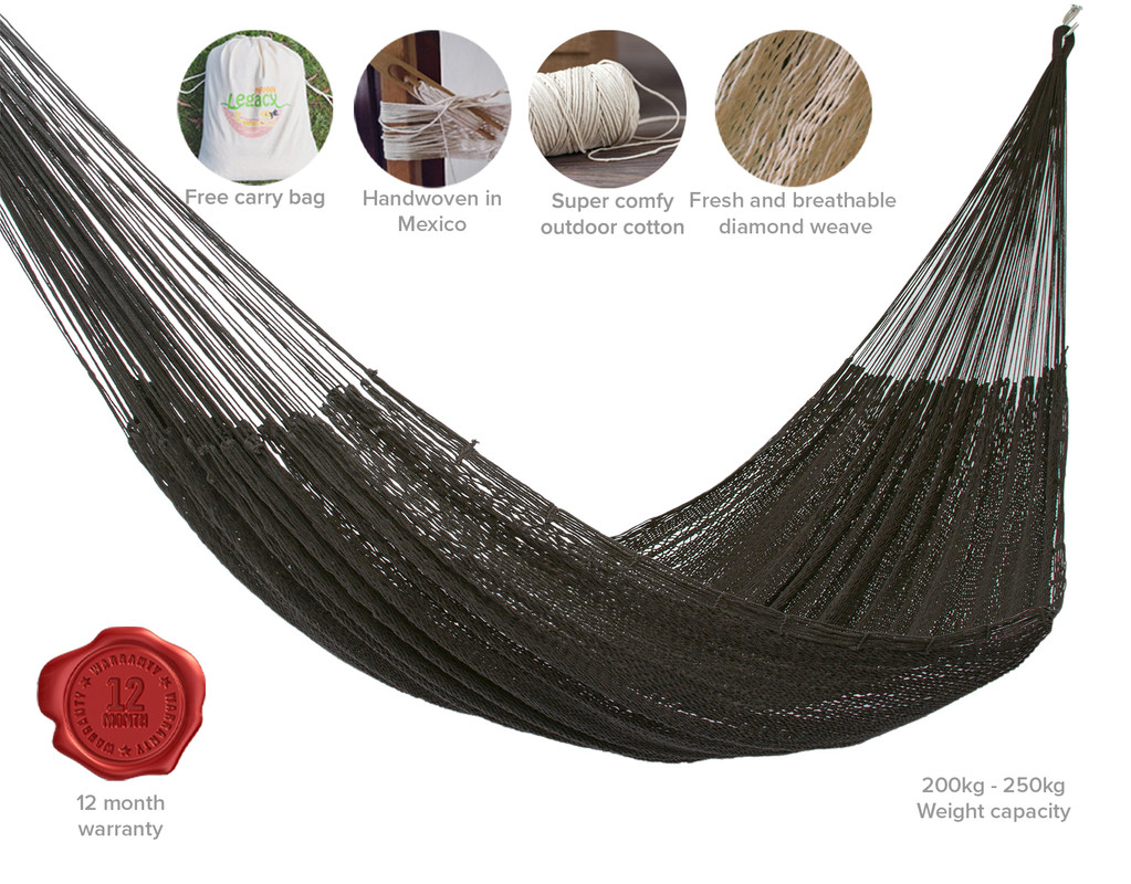 Outdoor undercover cotton Mayan Legacy hammock King size Black