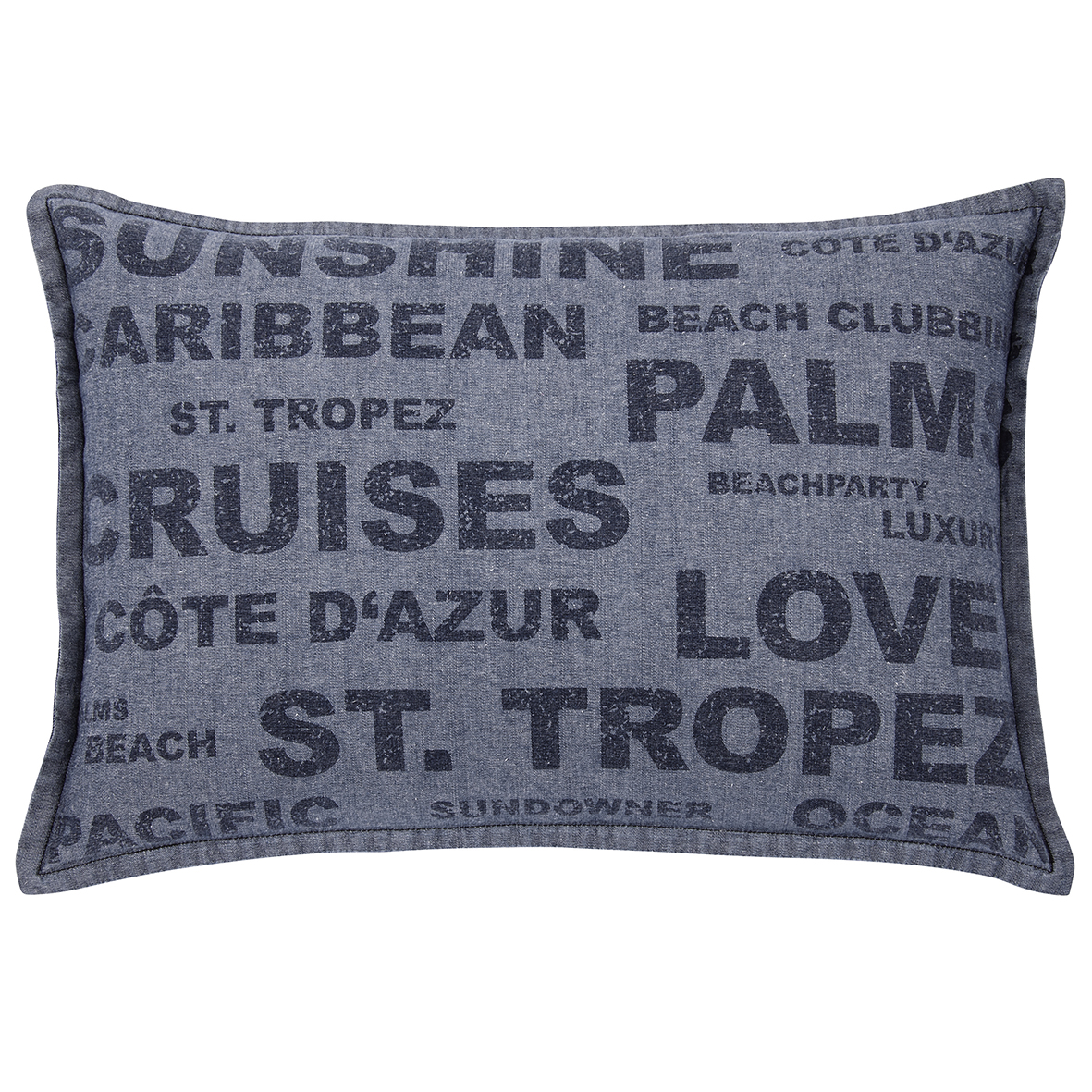 Pack of 2 Denim Sunshine Wording Cushion Cover Cruises, Caribbean, Love etc