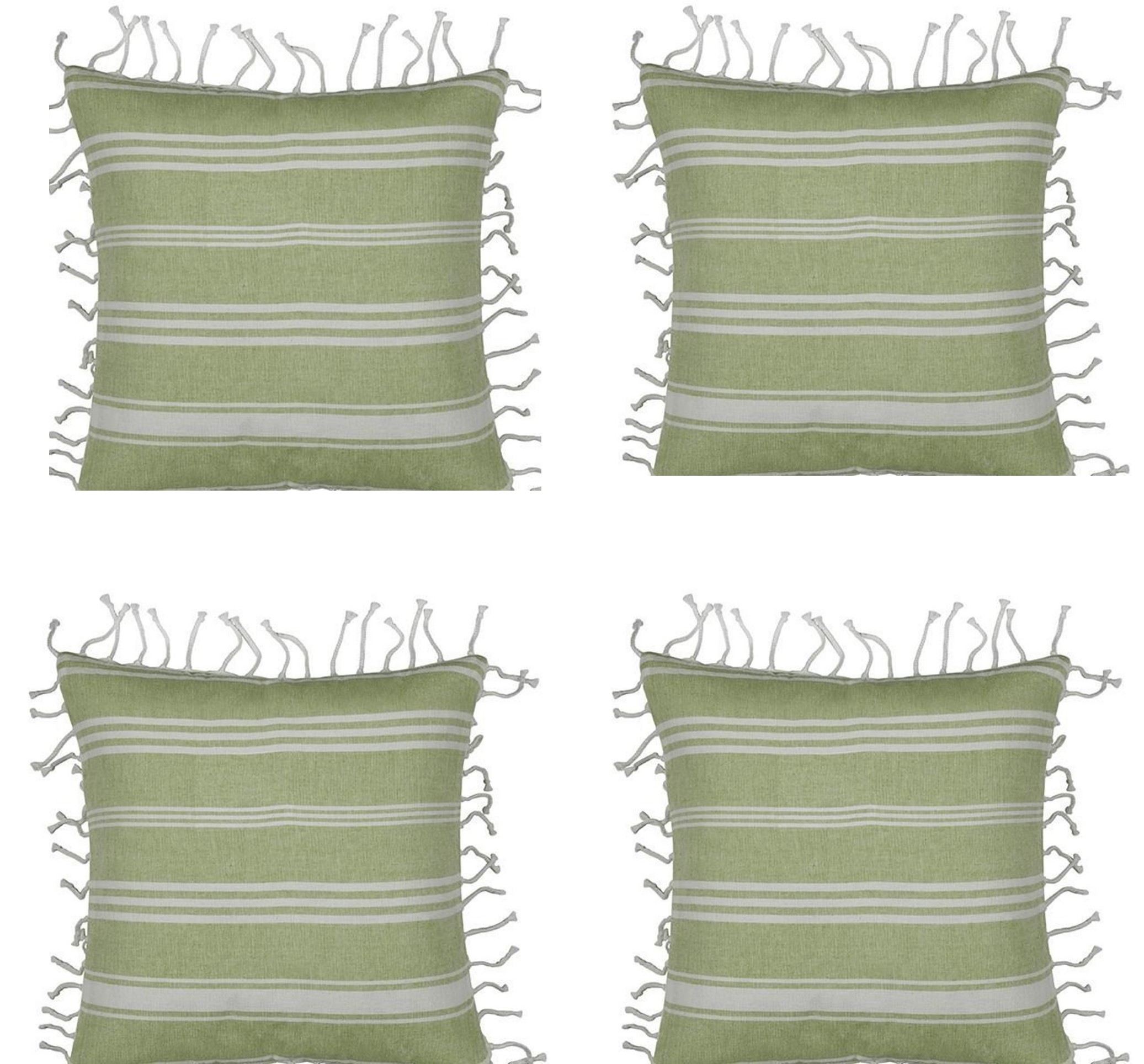 Pack of 4 Fresh Green & White Striped Cushion Cover with white knotted edging