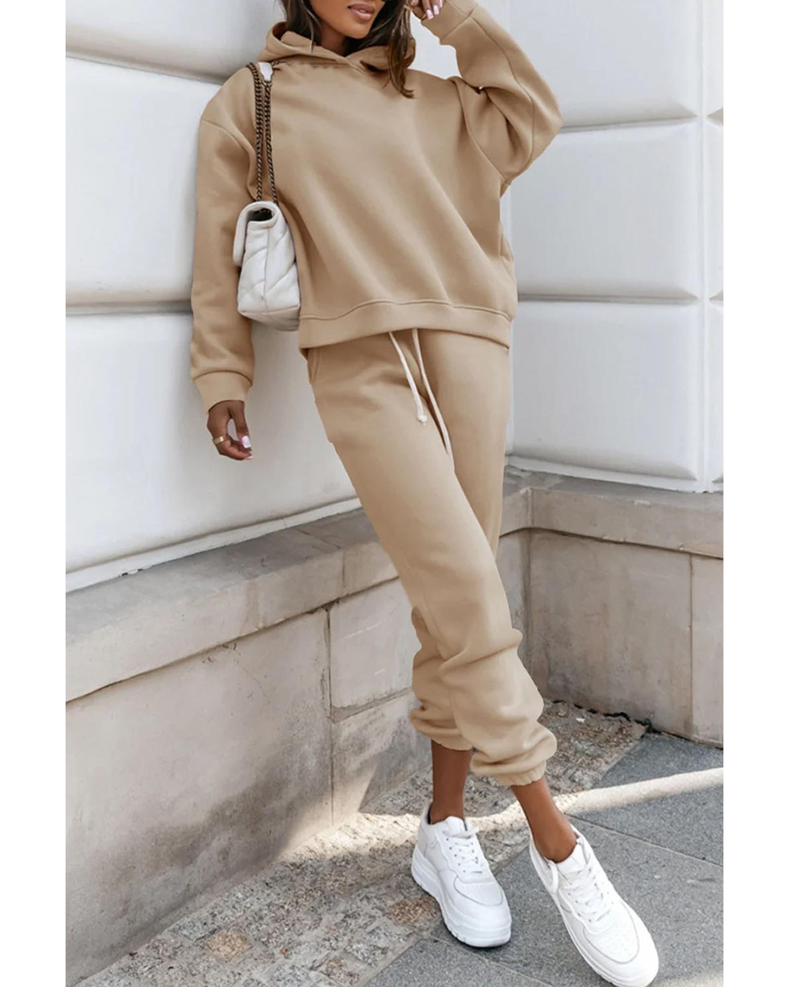 Pale Khaki Chunky Two-piece Hooded Sweatsuit – XL