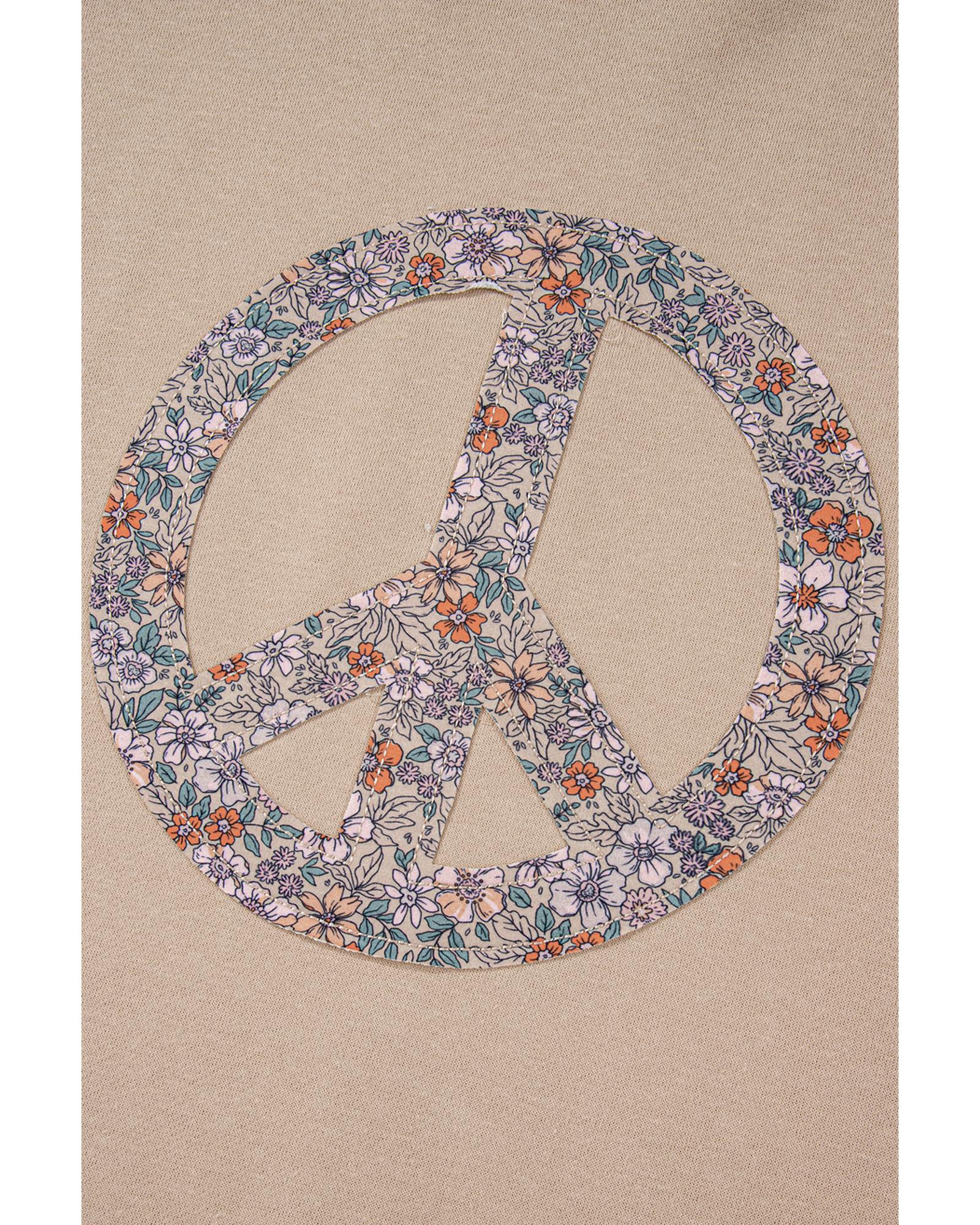 Pale Khaki Floral Peace Sign Graphic Washed Terry Plus Size Sweatshirt – 3X