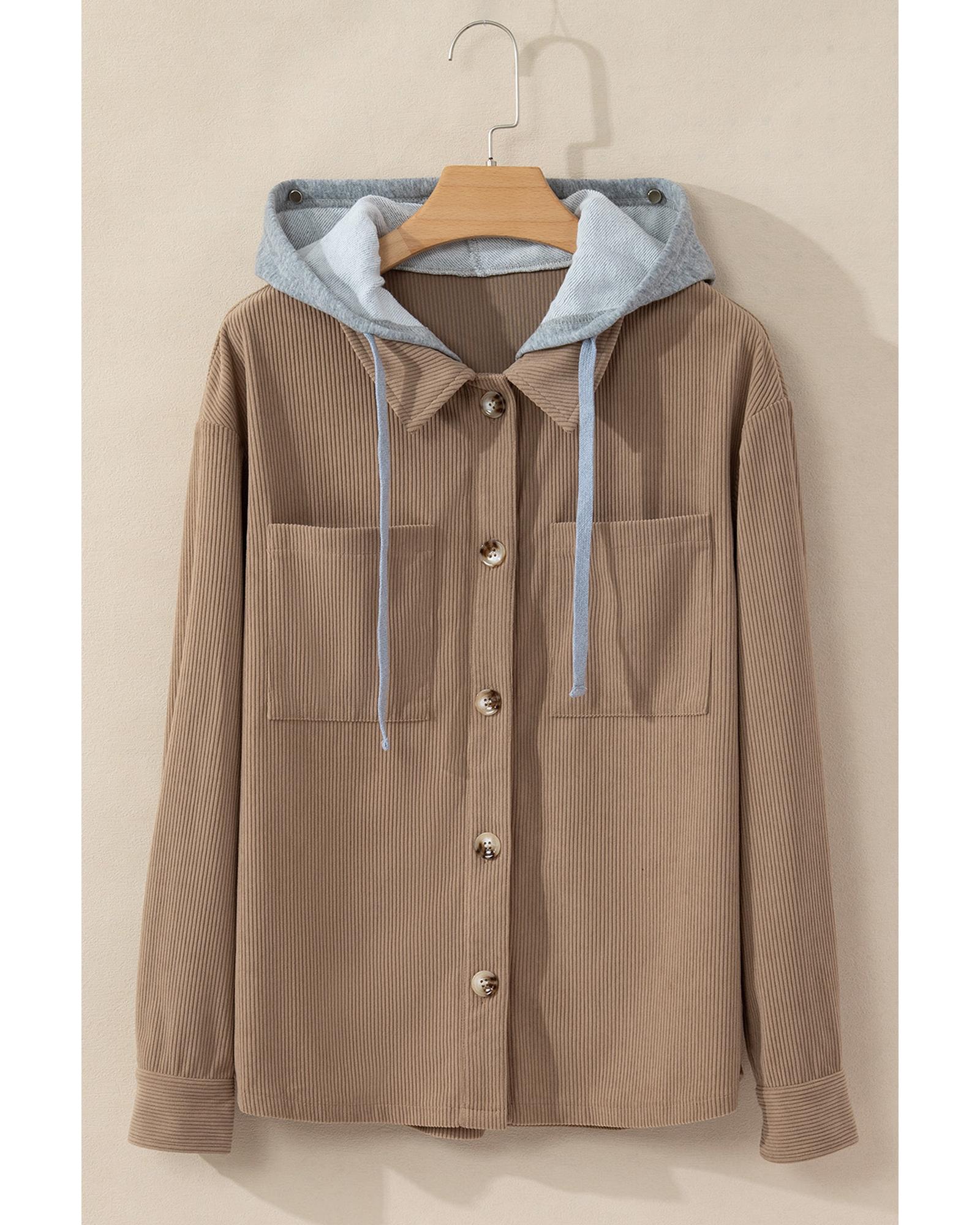 Pale Khaki Hooded Drawstring Pockets Corduroy Shacket - 2XL Original price was: $74.99.Current price is: $40.99.