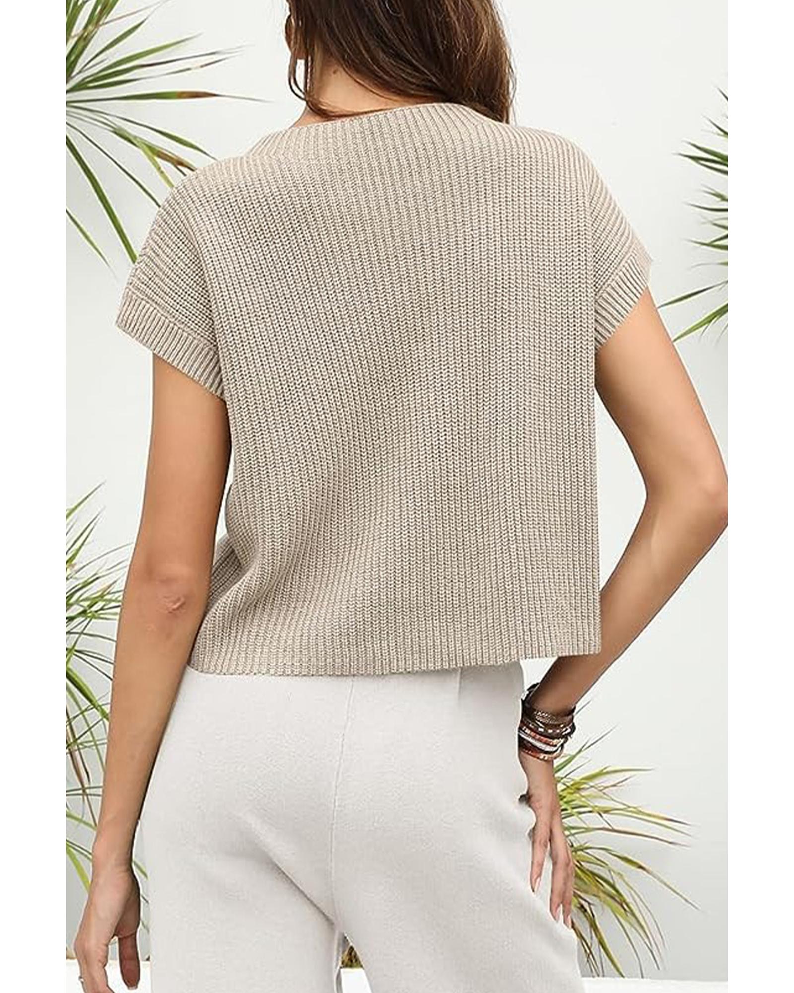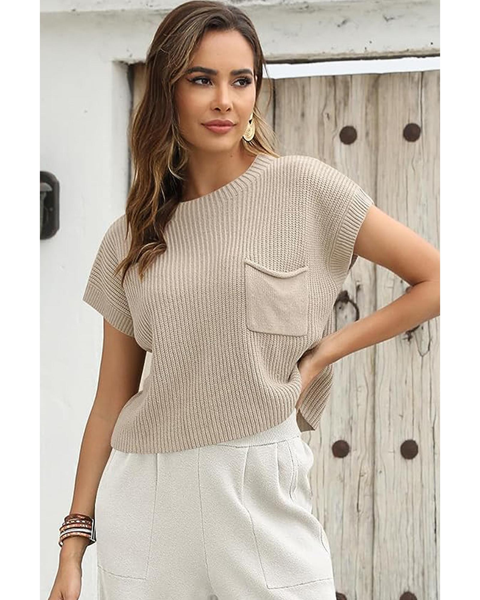Pale Khaki Patch Pocket Short Sleeve Sweater – XL
