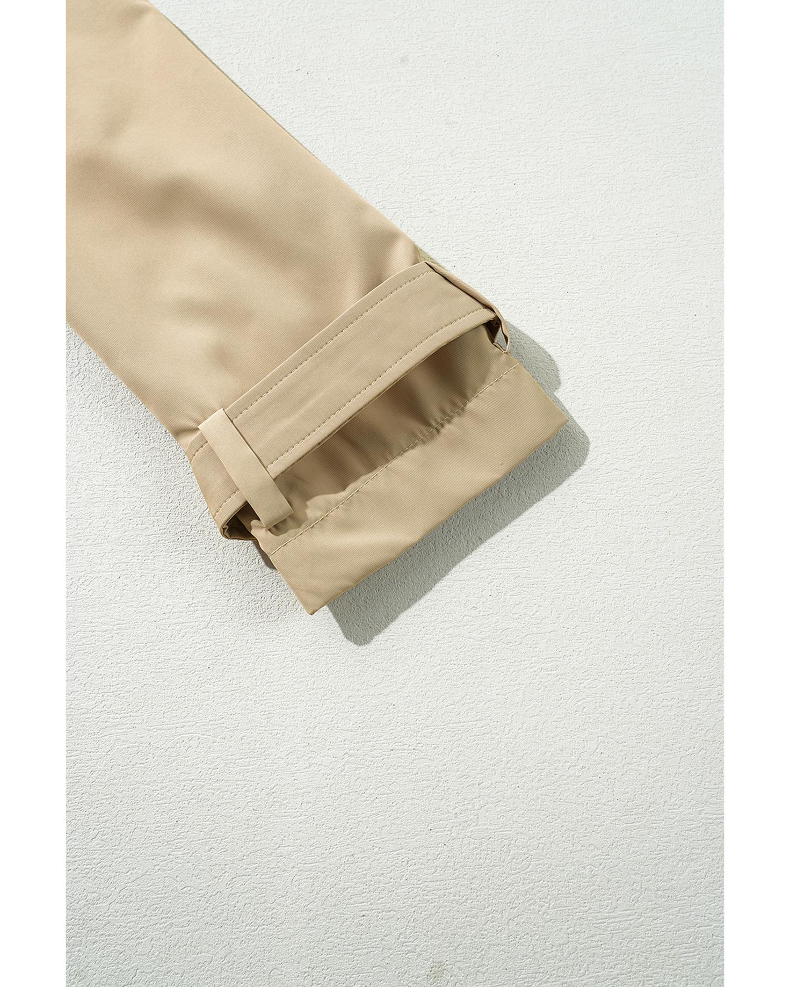 Pale Khaki Solid Color Lapel Collar Waist Tie Wind Coat – 2XL