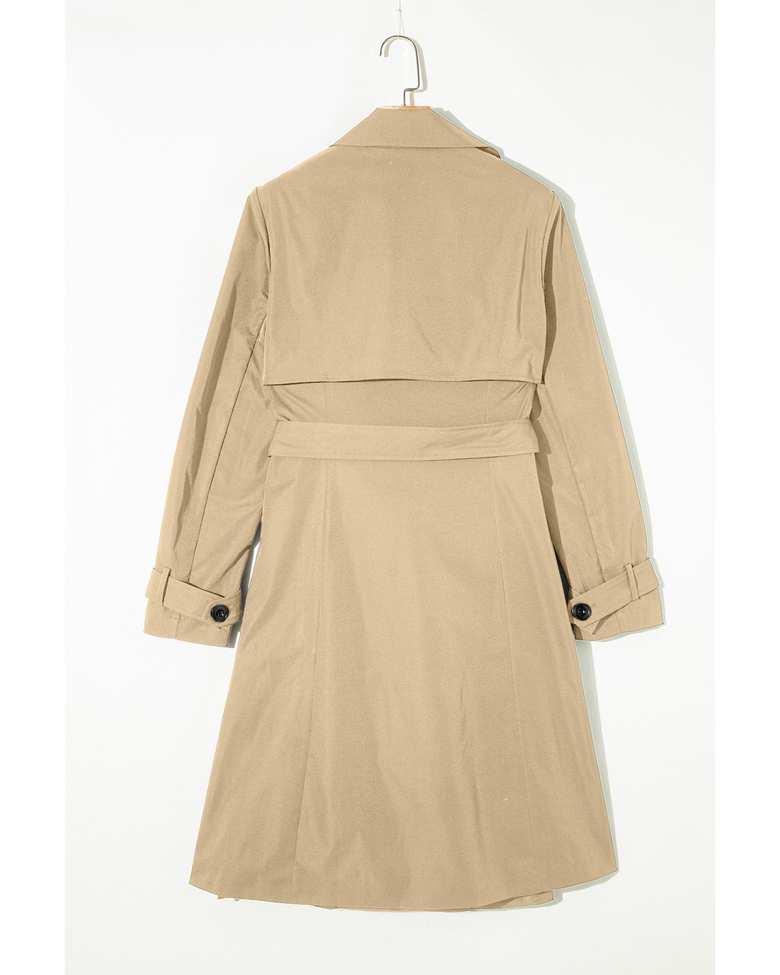 Pale Khaki Solid Color Lapel Collar Waist Tie Wind Coat – L