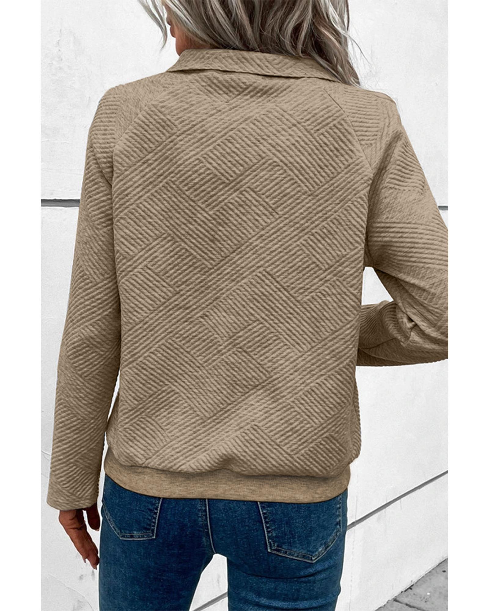 Pale Khaki Textured Knit Buttoned Kangaroo Pocket Sweatshirt – L