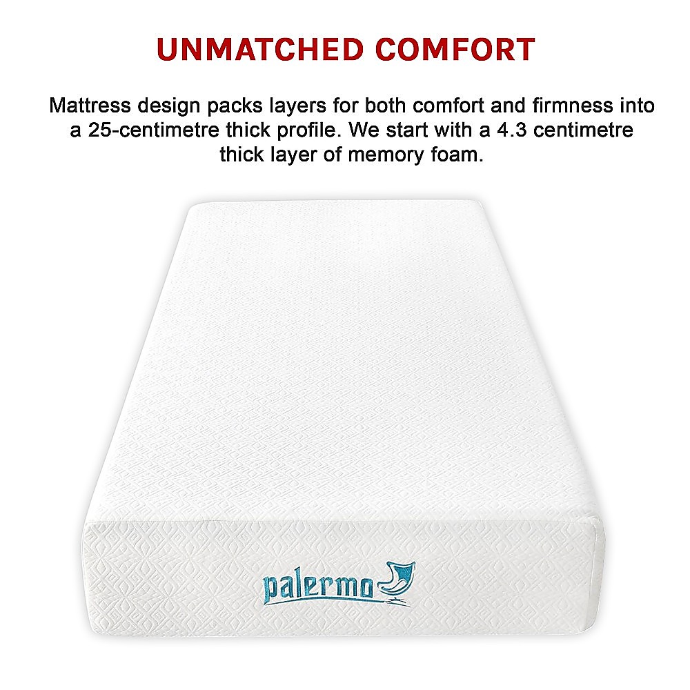 Palermo Single 25cm Gel Memory Foam Mattress – Dual-Layered – CertiPUR-US Certified