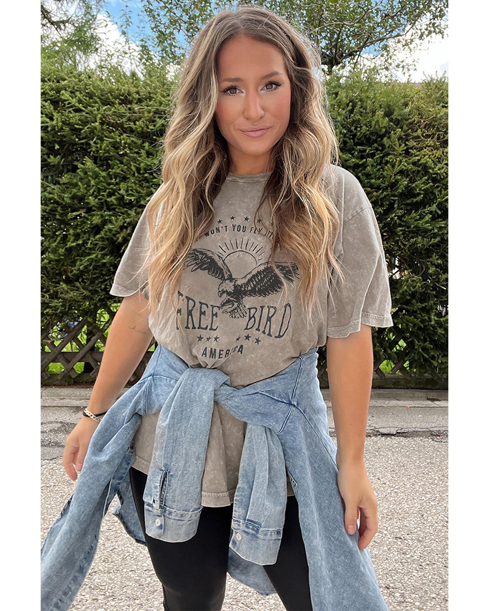 Parchment AMERICA FREE BIRD Vintage Graphic Mineral Washed Tee – M