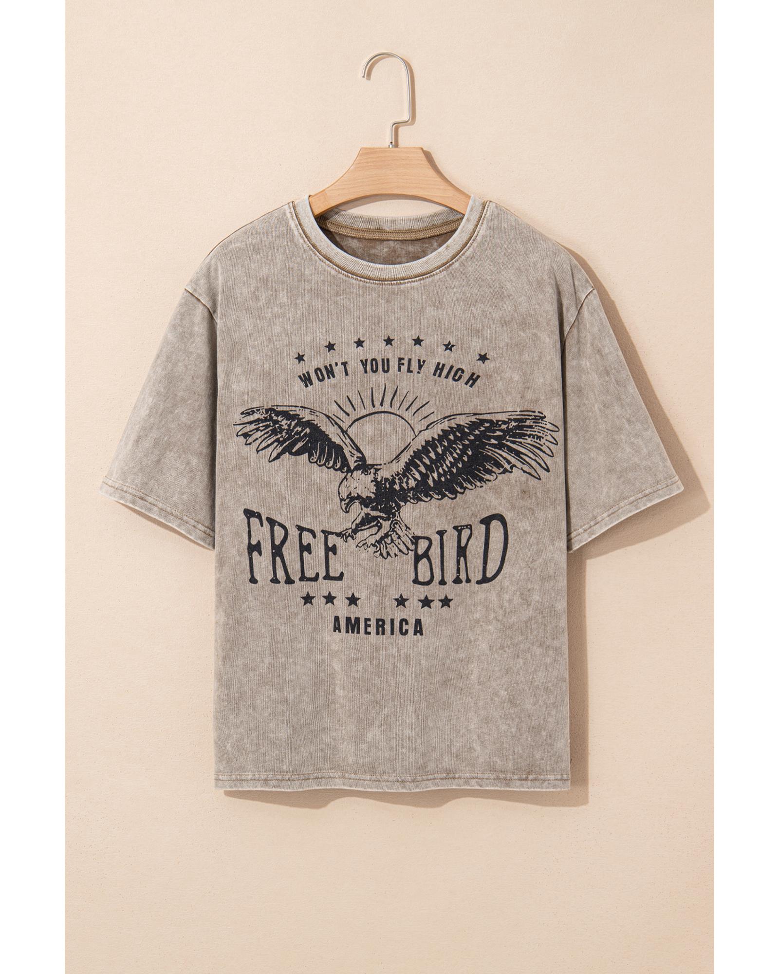 Parchment AMERICA FREE BIRD Vintage Graphic Mineral Washed Tee – XL