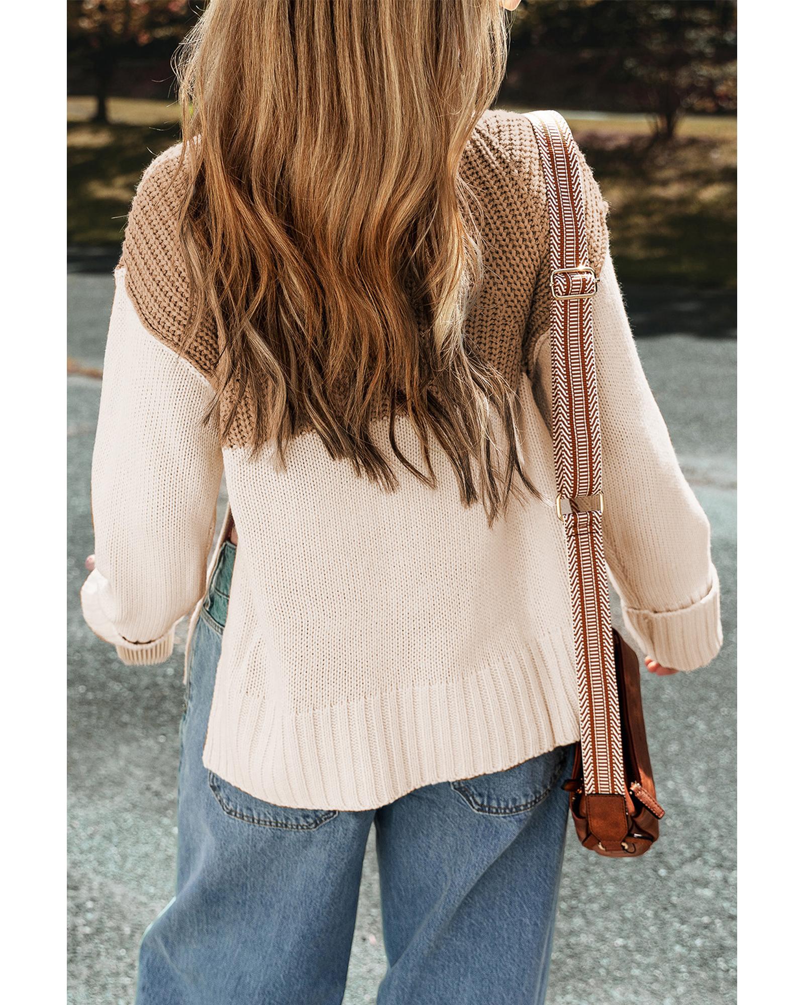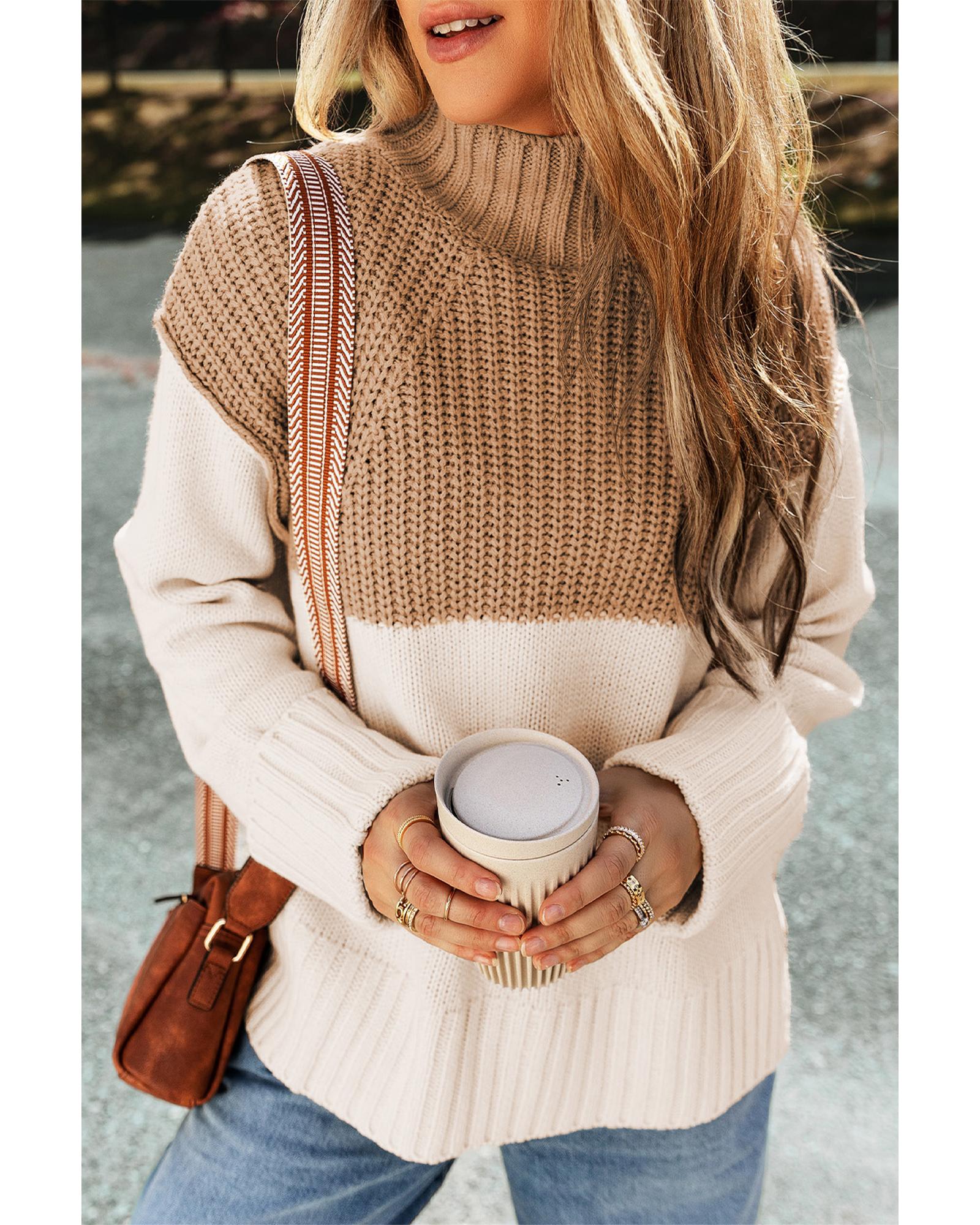 - forward Parchment Cable Knit Color Block Side Splits High Neck Sweater