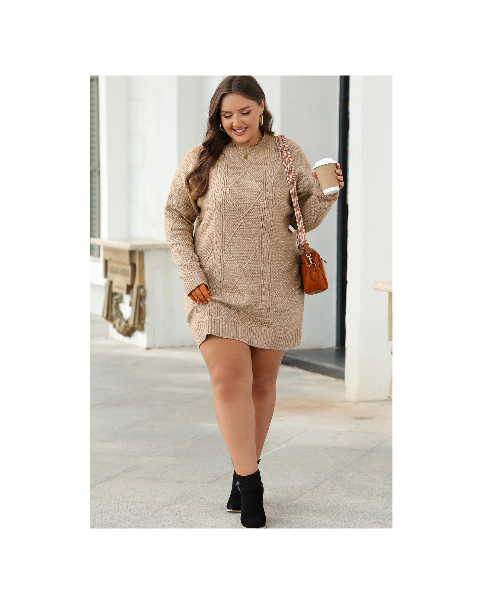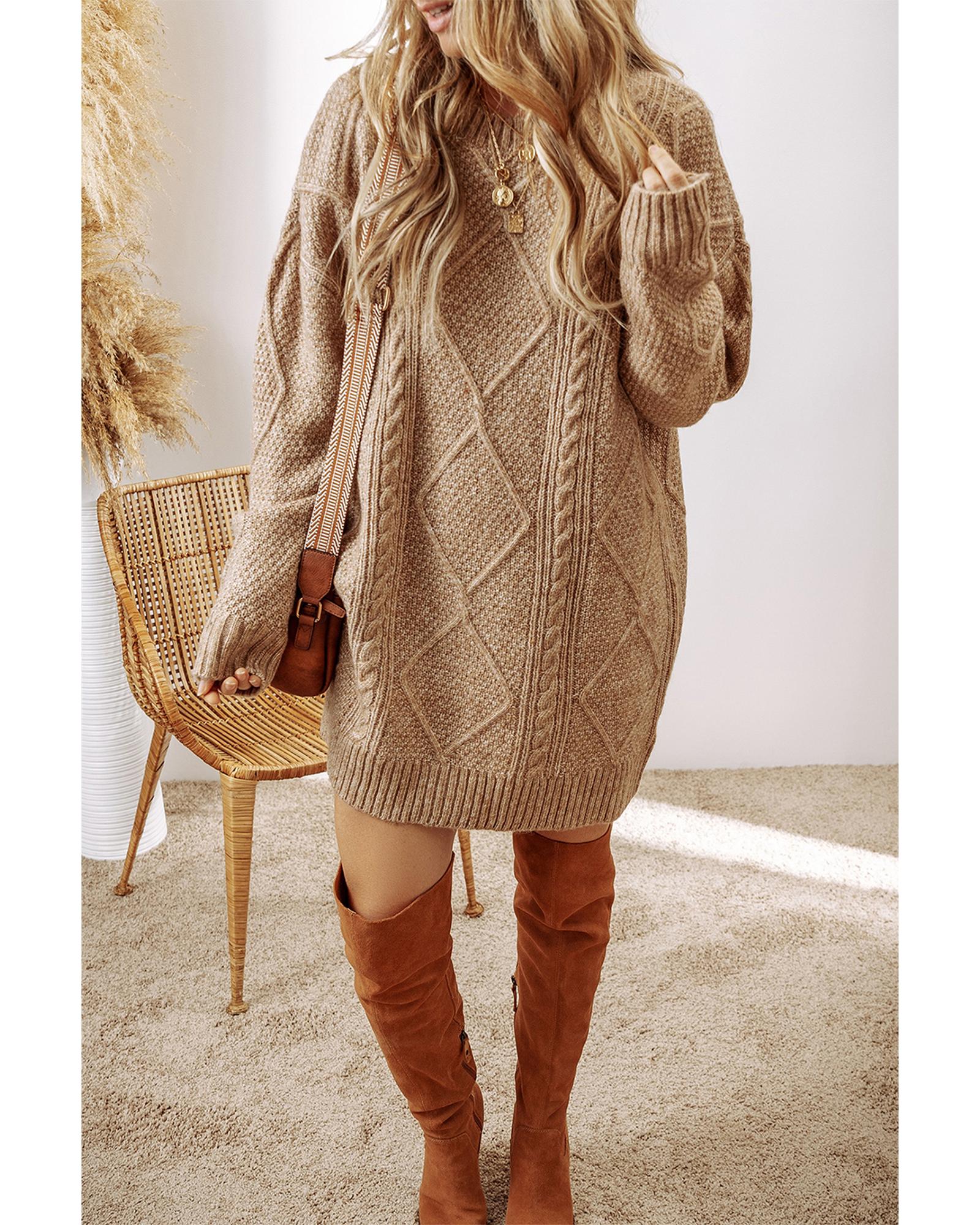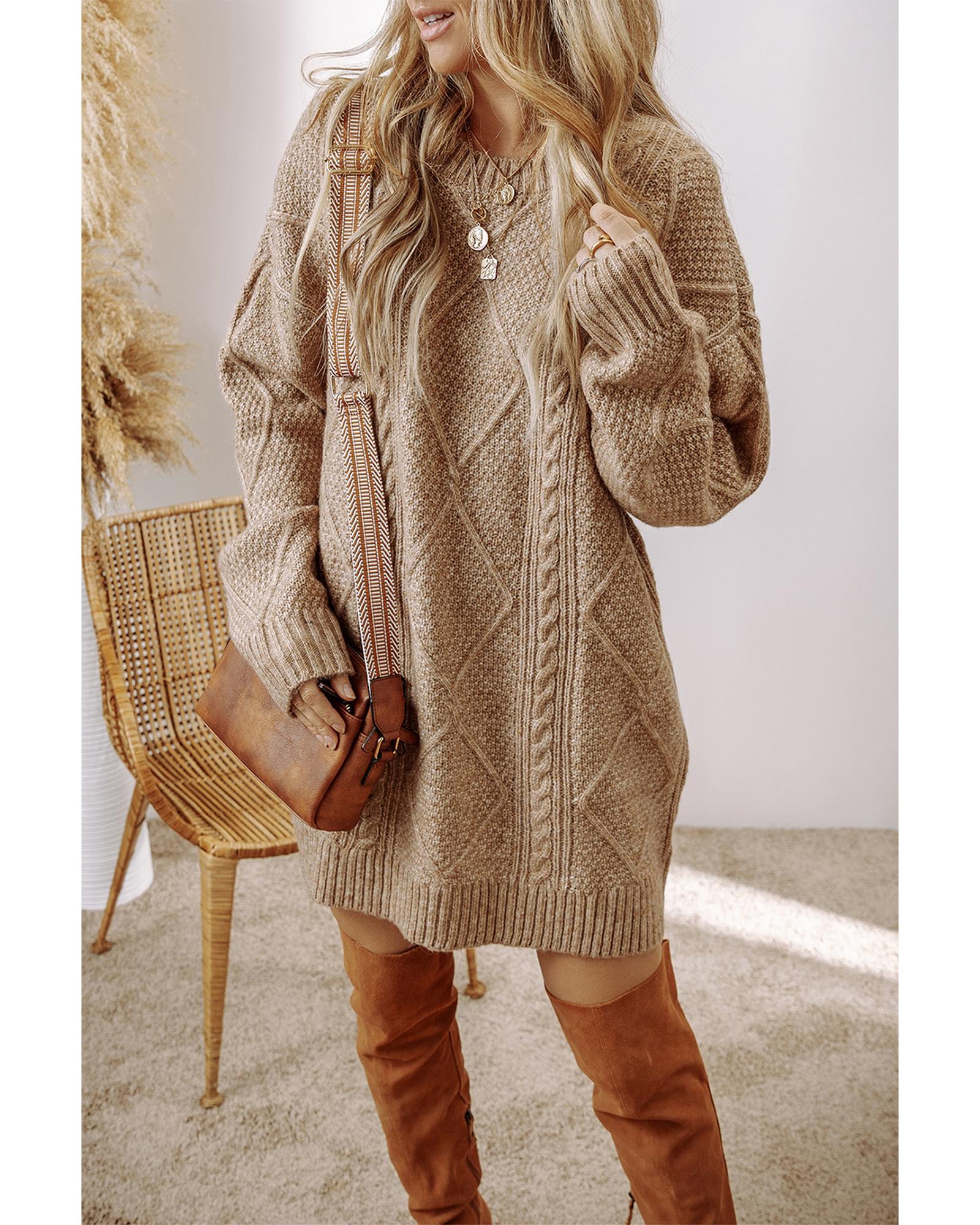 Parchment Cable Knit Drop Shoulder Loose Fit Sweater Dress – L