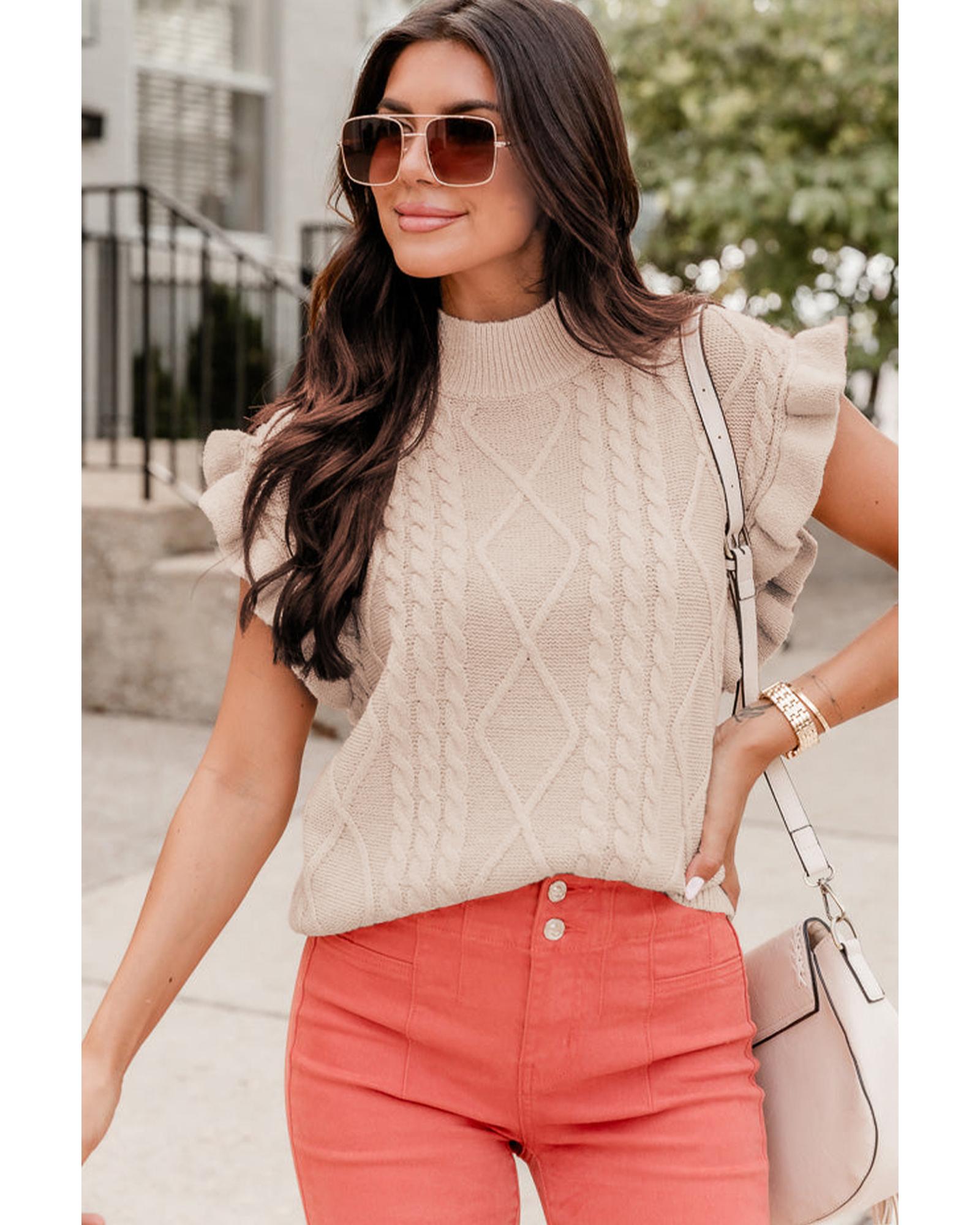 Parchment Cable Knit Mock Neck Cap Sleeve Sweater – XL