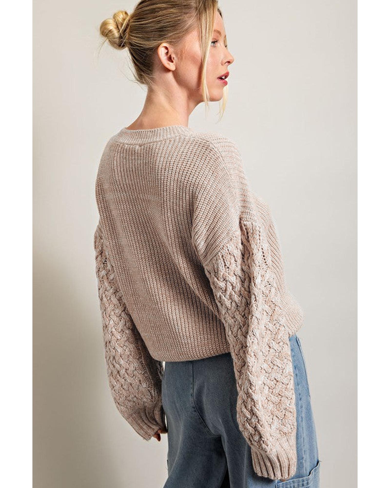 Parchment Cable Knit Sleeve Drop Shoulder Sweater – M