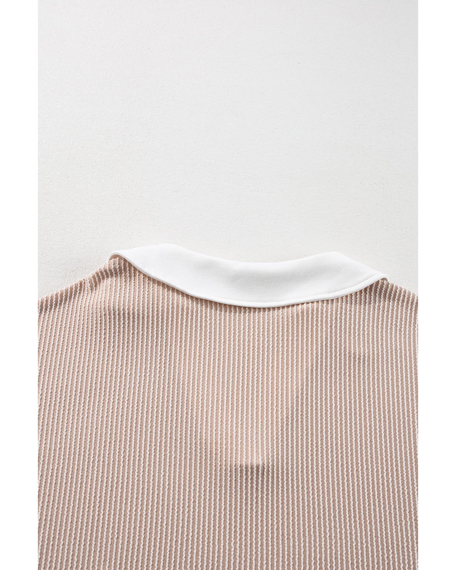 Parchment Corded Colorblock Long Sleeve Slit V Neck Plus Top - 1X