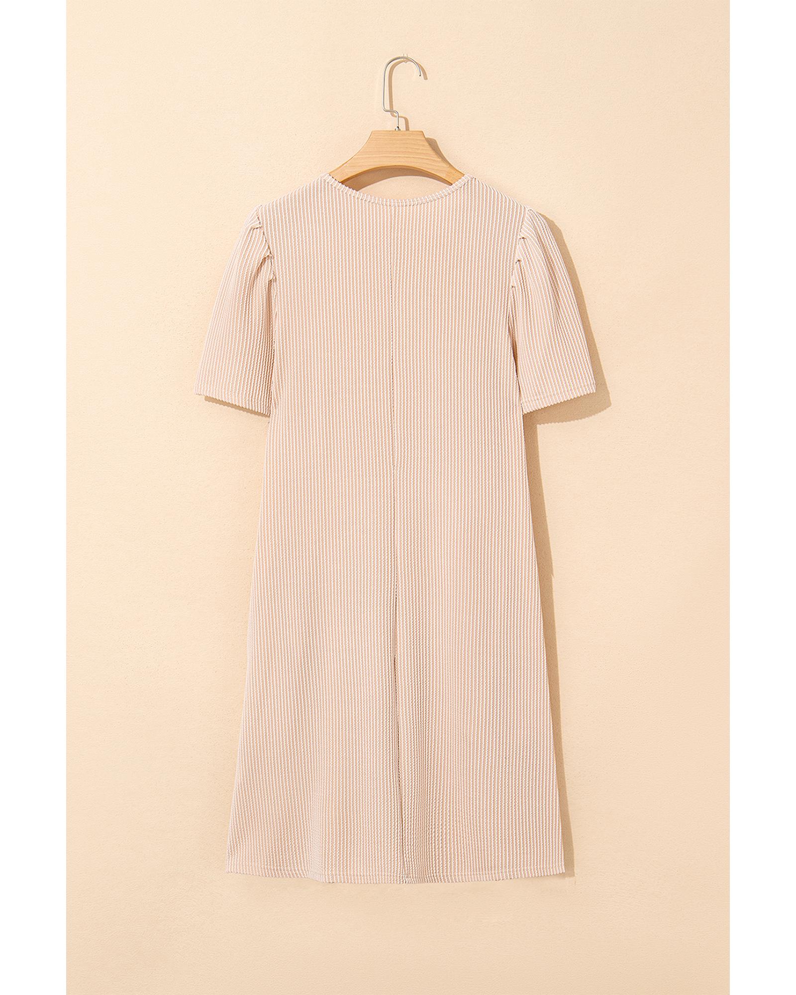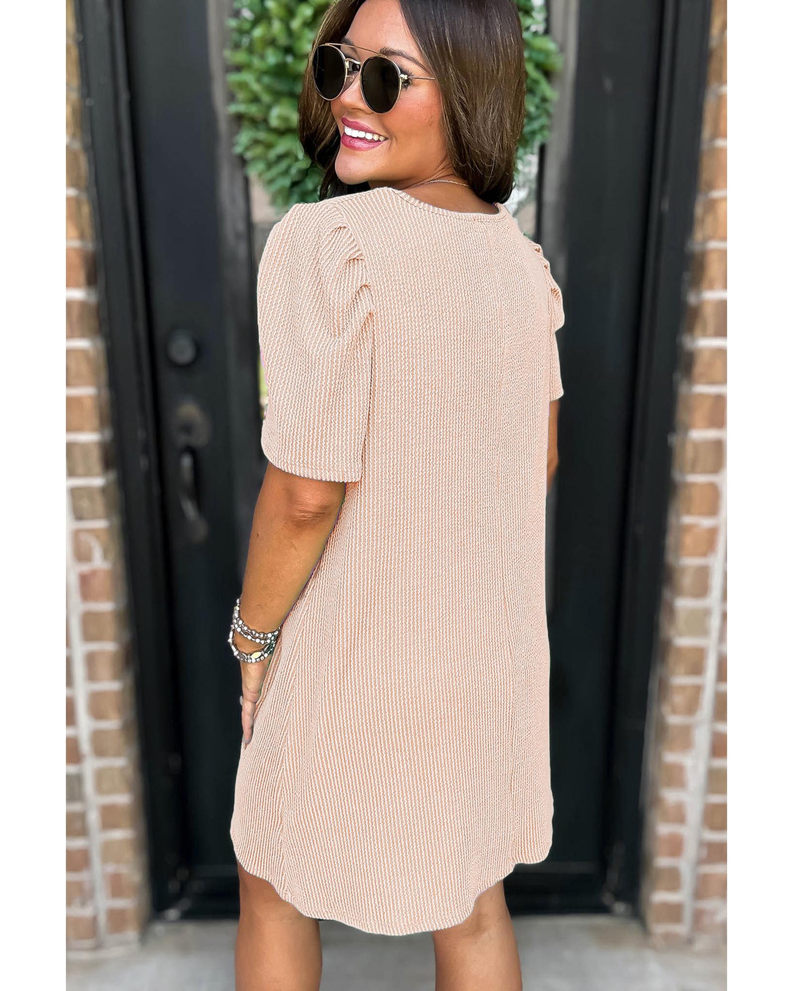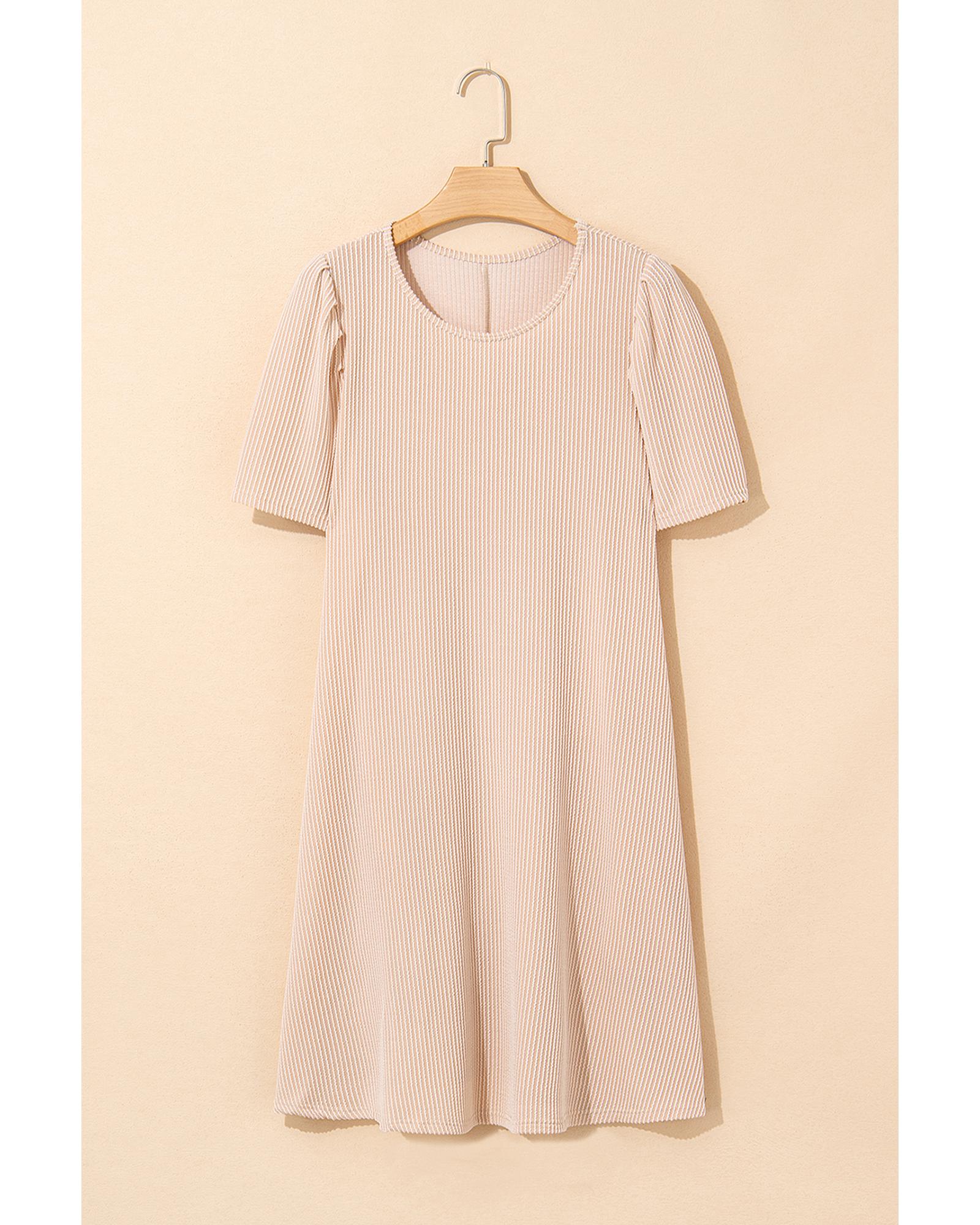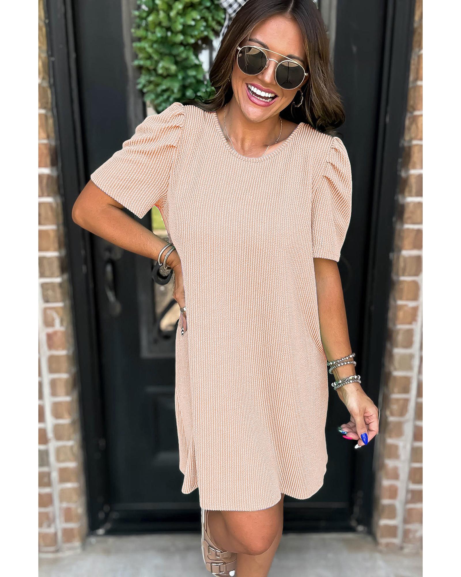 Parchment Corded Knit Crew Neck Puff Sleeve Shift Mini Dress – XL
