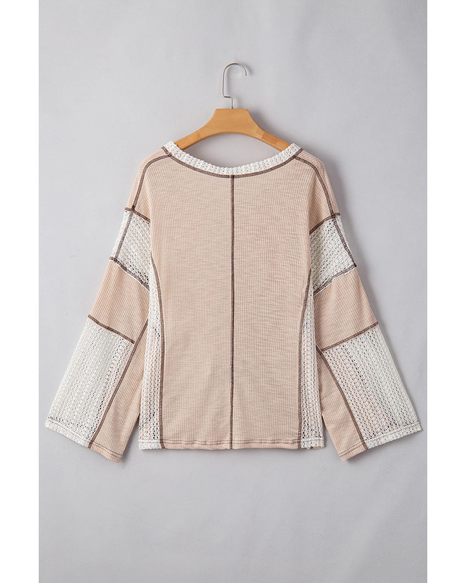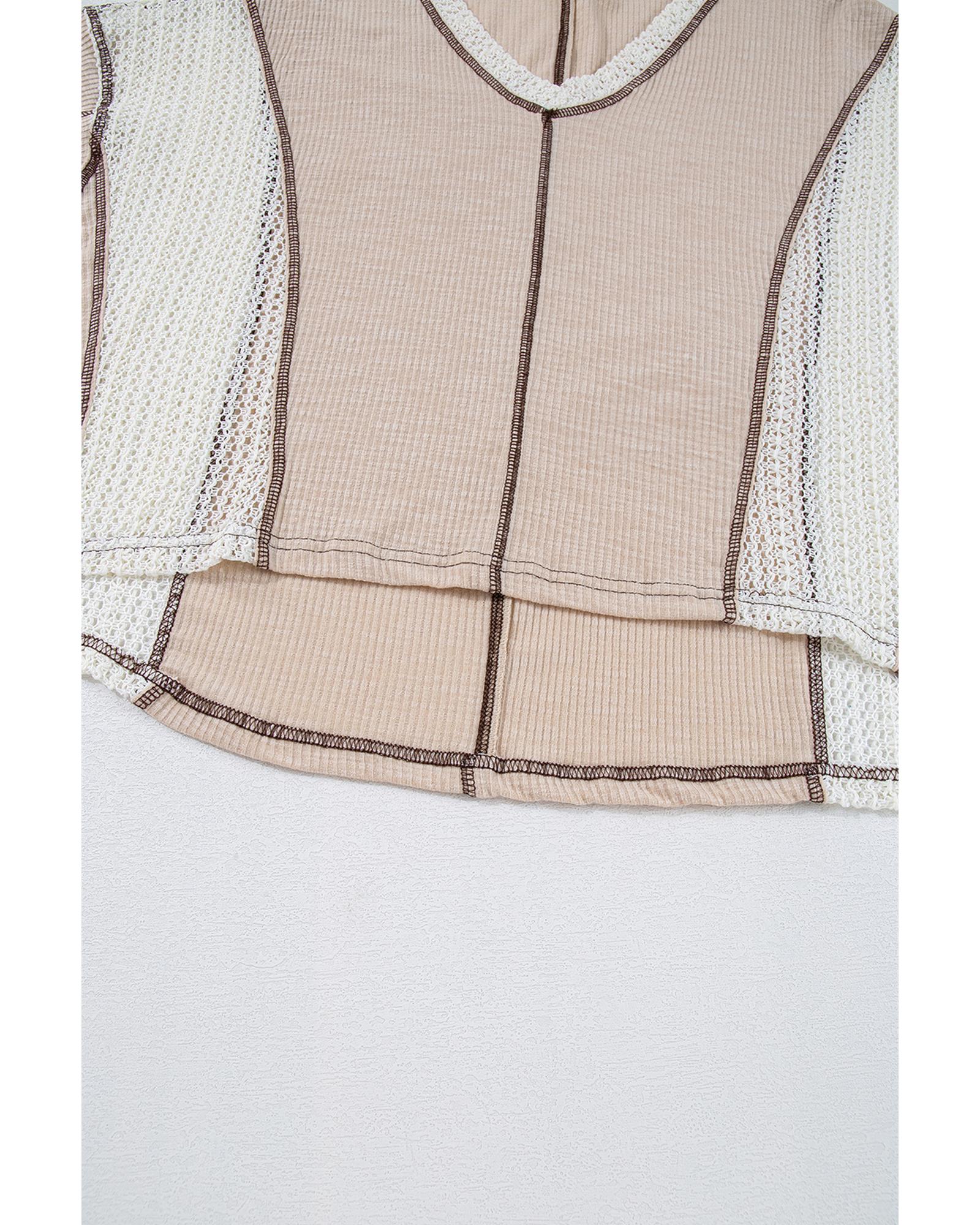 Parchment Crochet Detail Exposed Seam High Low Loose Top – XL