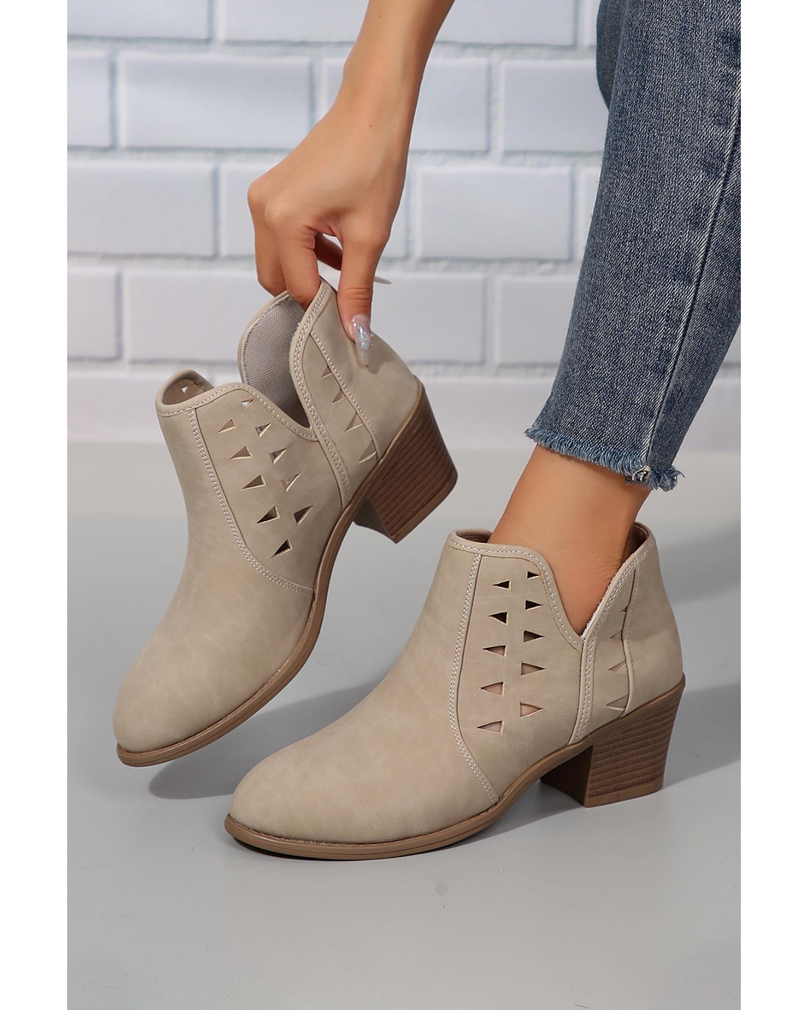Parchment Cut Out Suede Pointed Toe Heeled Ankle Boots – 37 EU