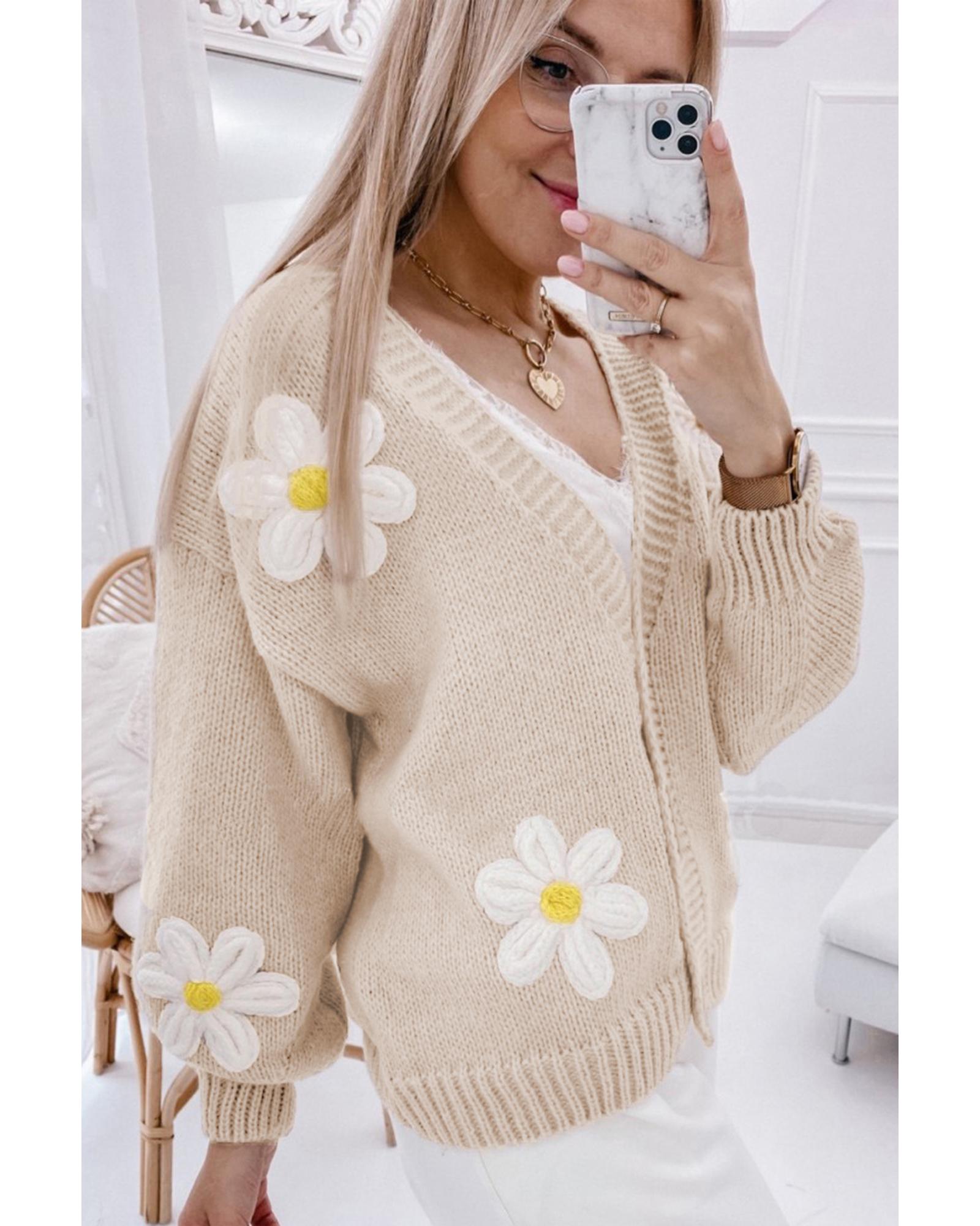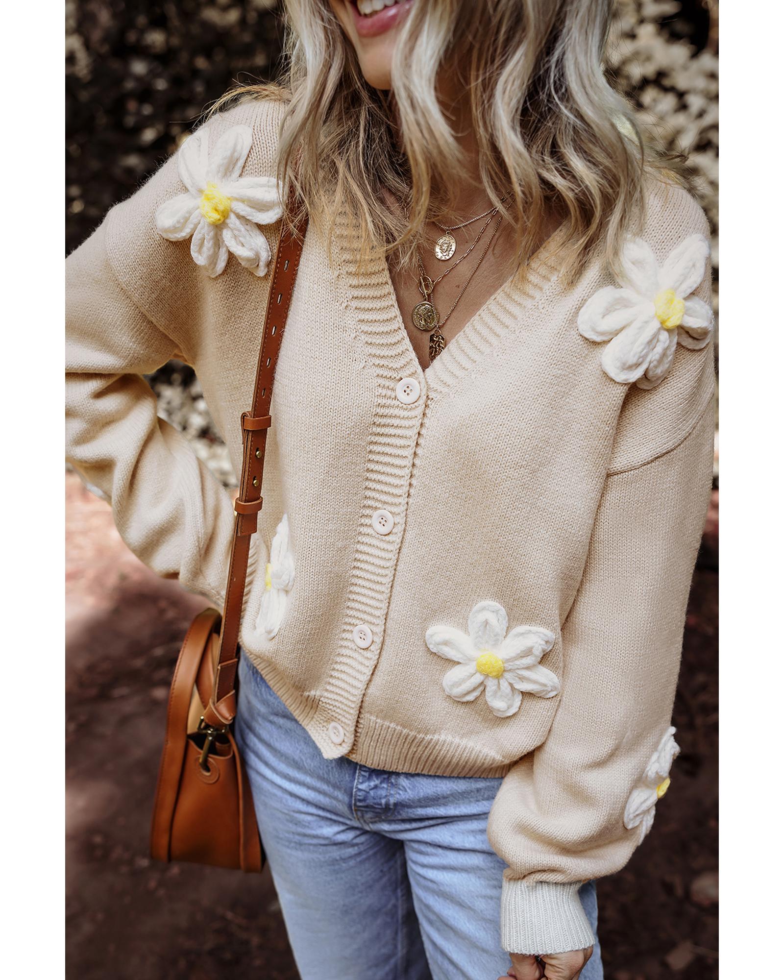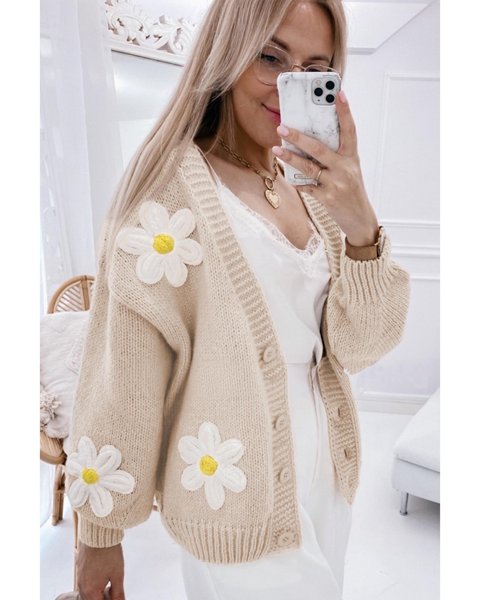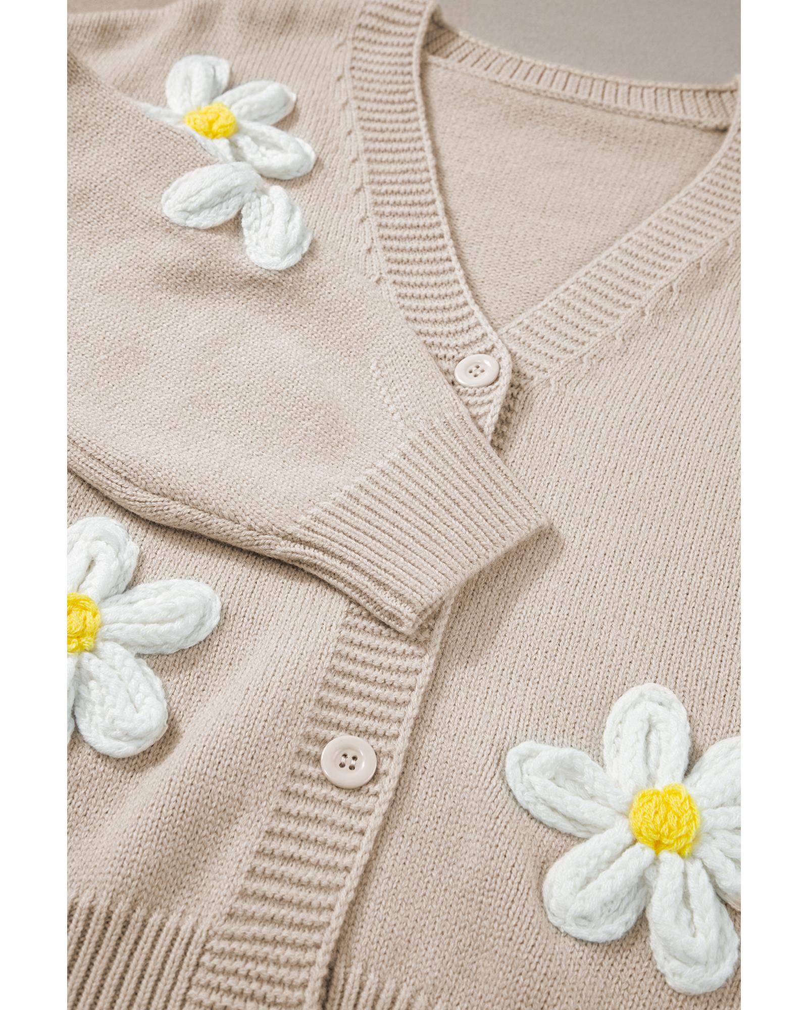 Parchment Elegant Flower Decor Button Front Cardigan – L