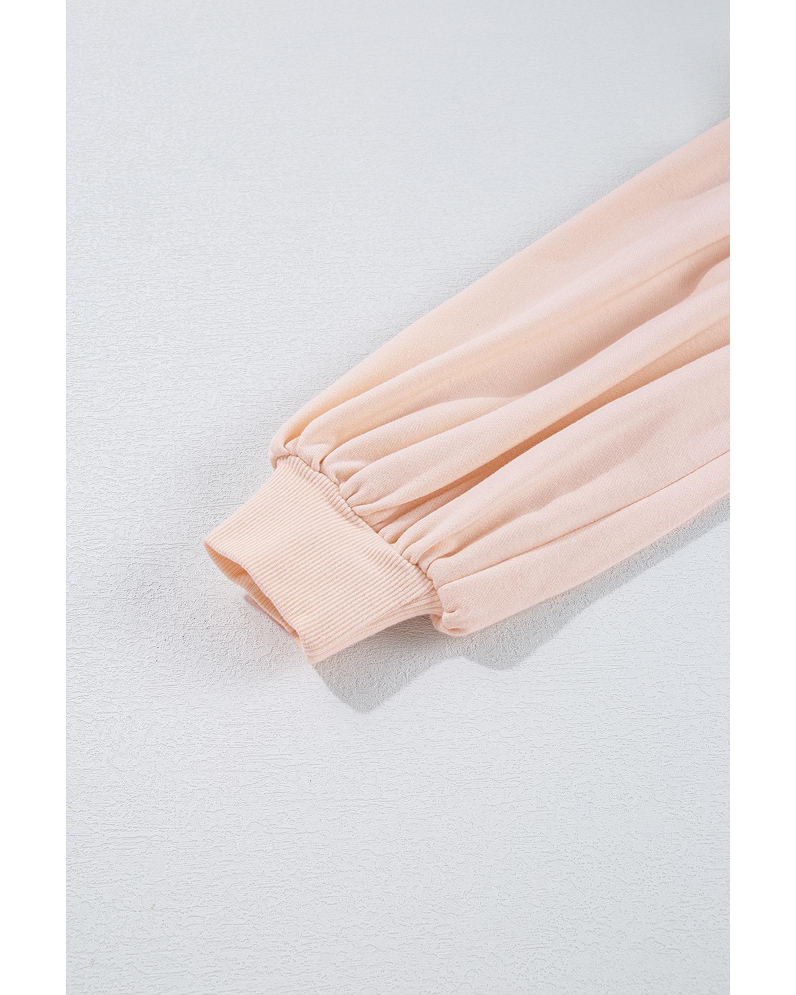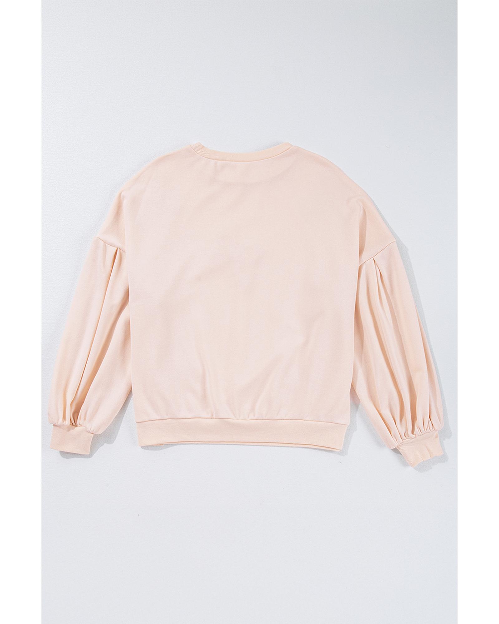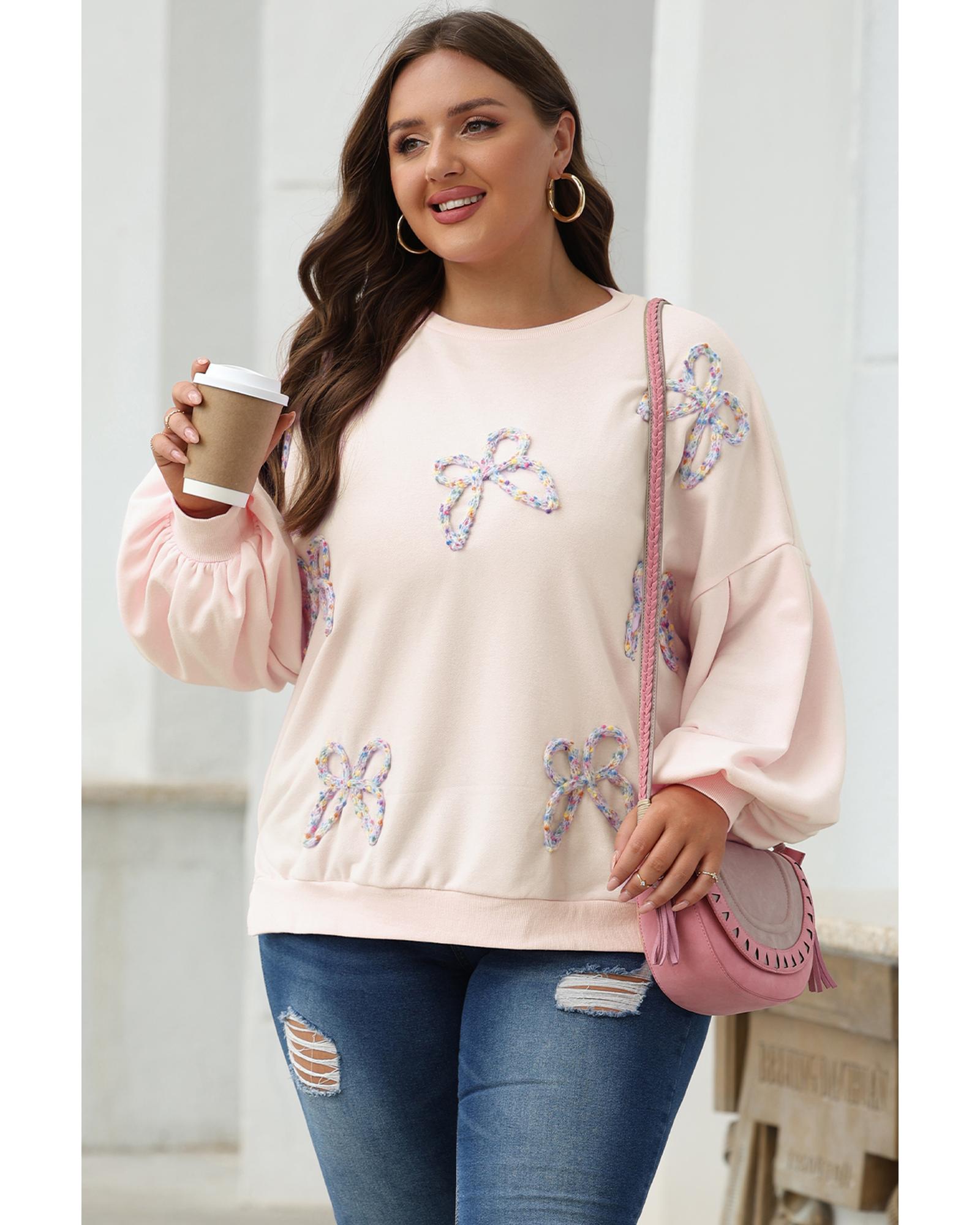 Parchment Embroidered Bow Lantern Sleeve Oversized Pullover Sweatshirt – M
