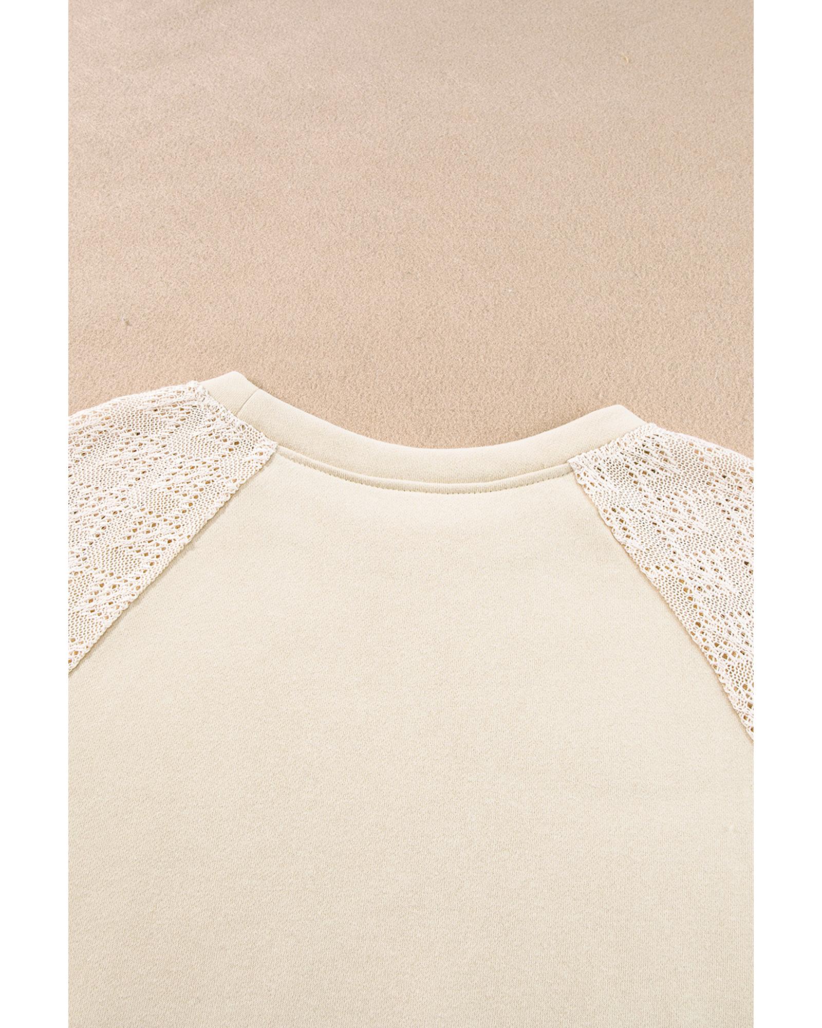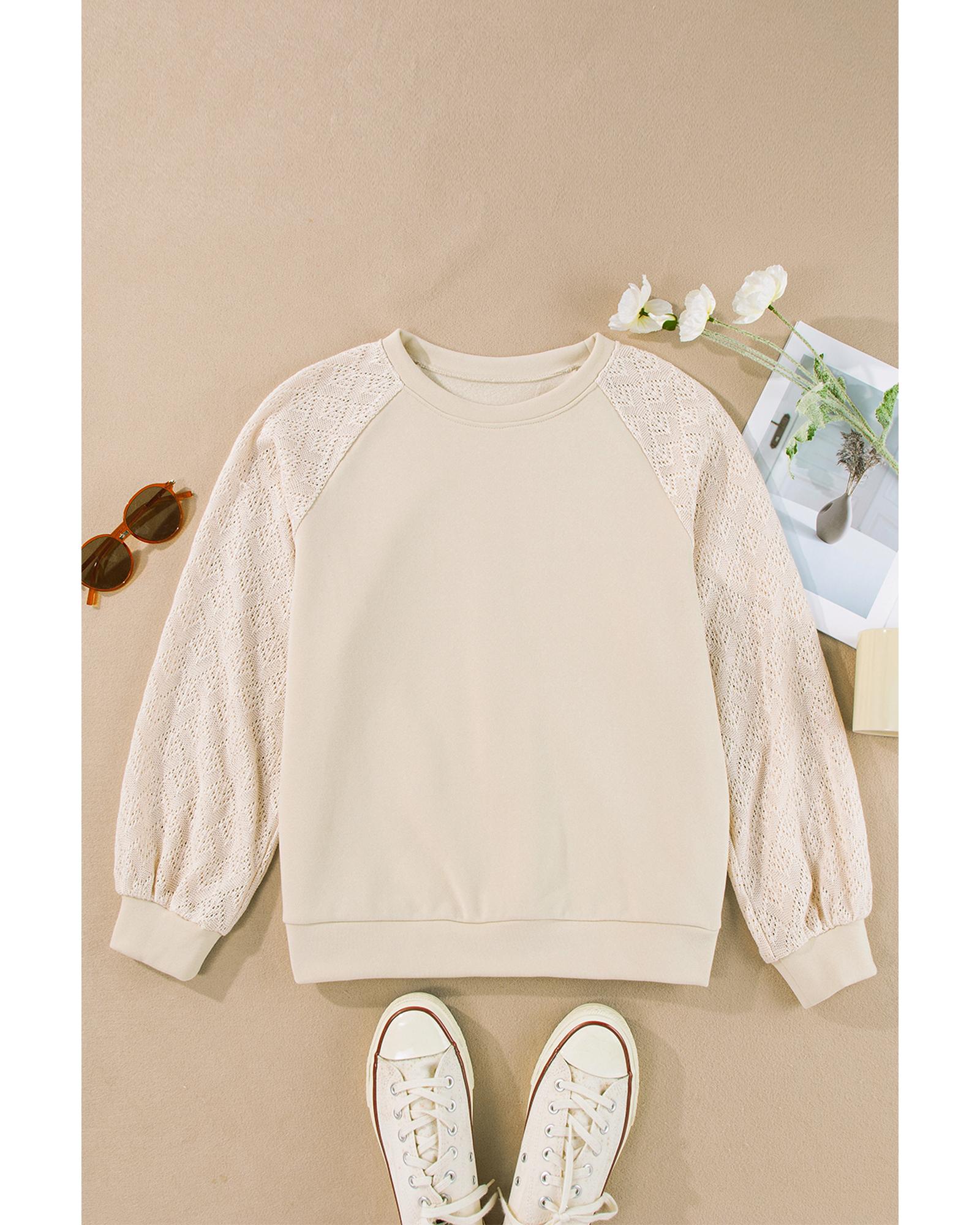 Parchment Eyelet Knit Patchwork Raglan Sleeve Pullover Top – S