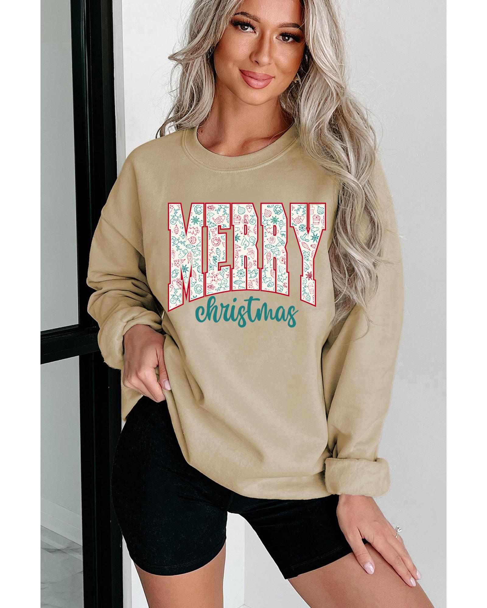 • Parchment Festive Element Printed MERRY Christmas Graphic Sweatshirt