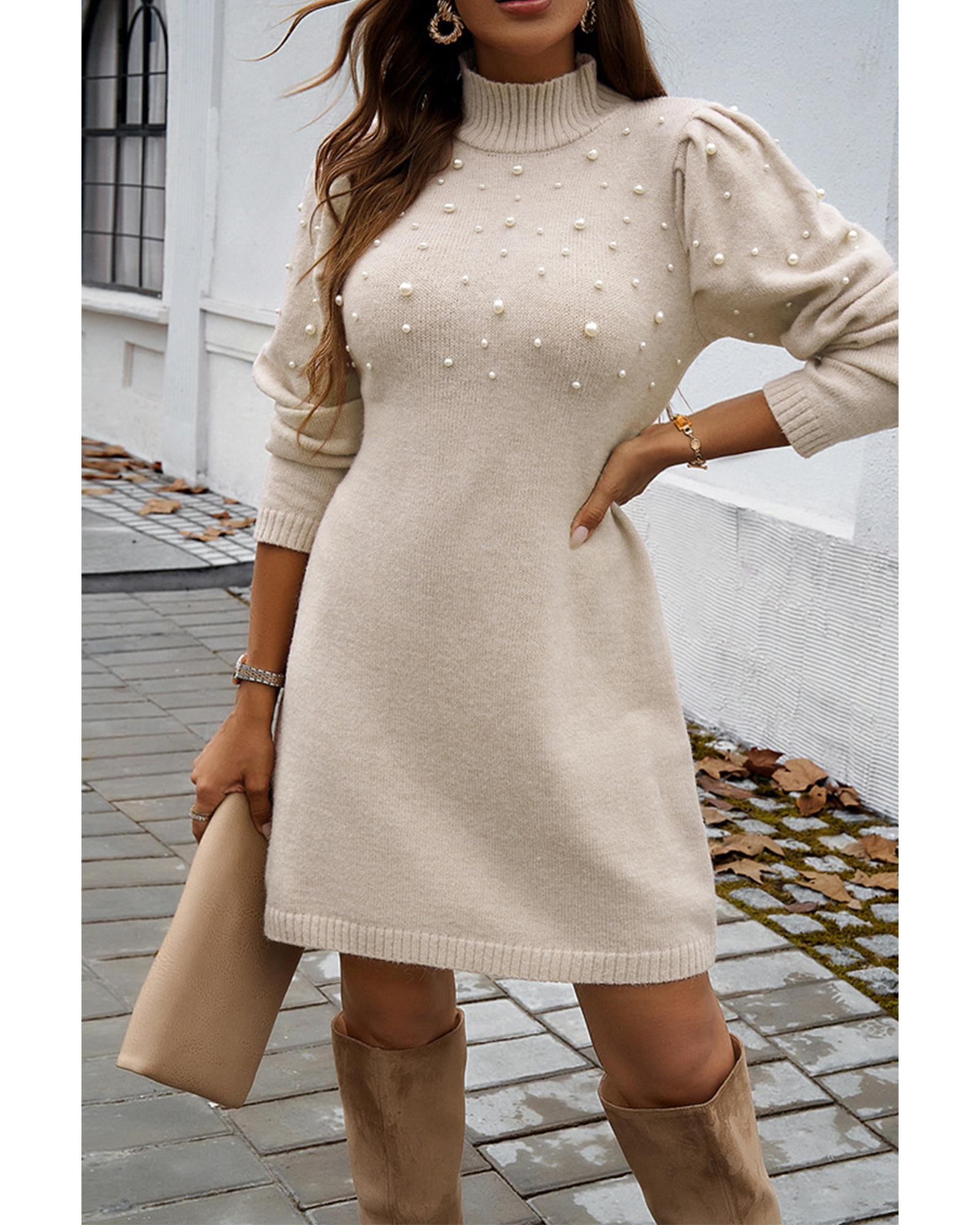Parchment Pearl Beaded High Neck Bodycon Sweater Dress – XL
