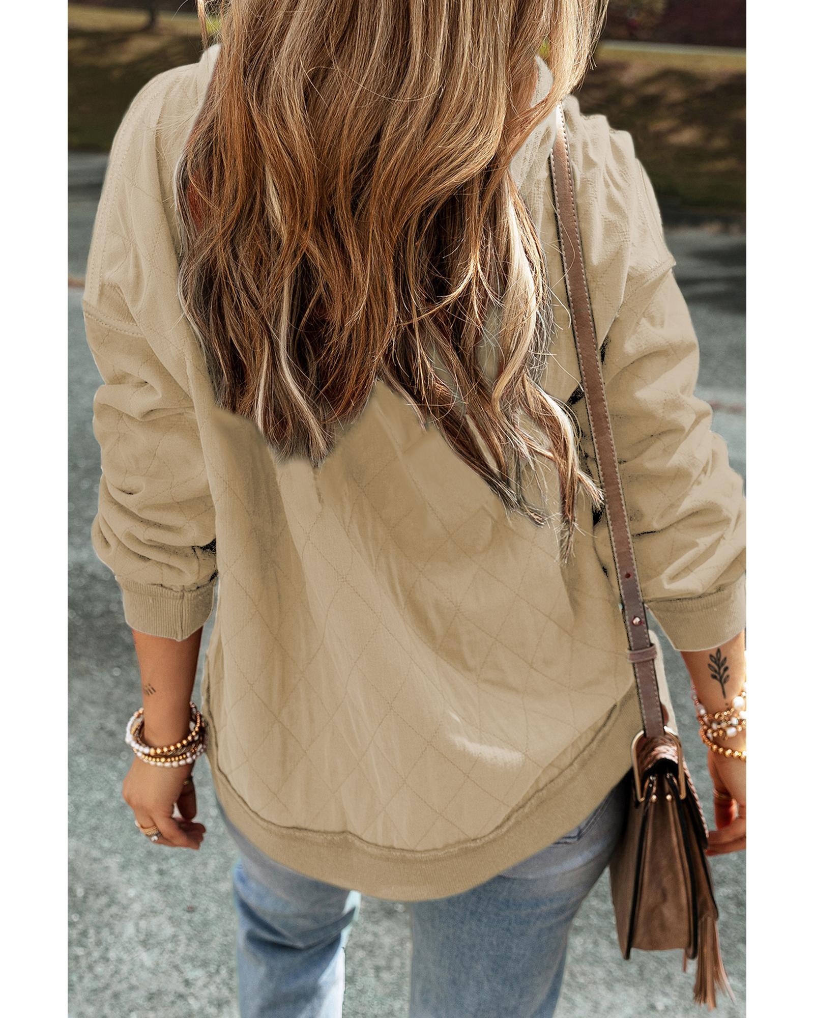 - neutral Parchment Quilted Patchwork Exposed Seam Hoodie