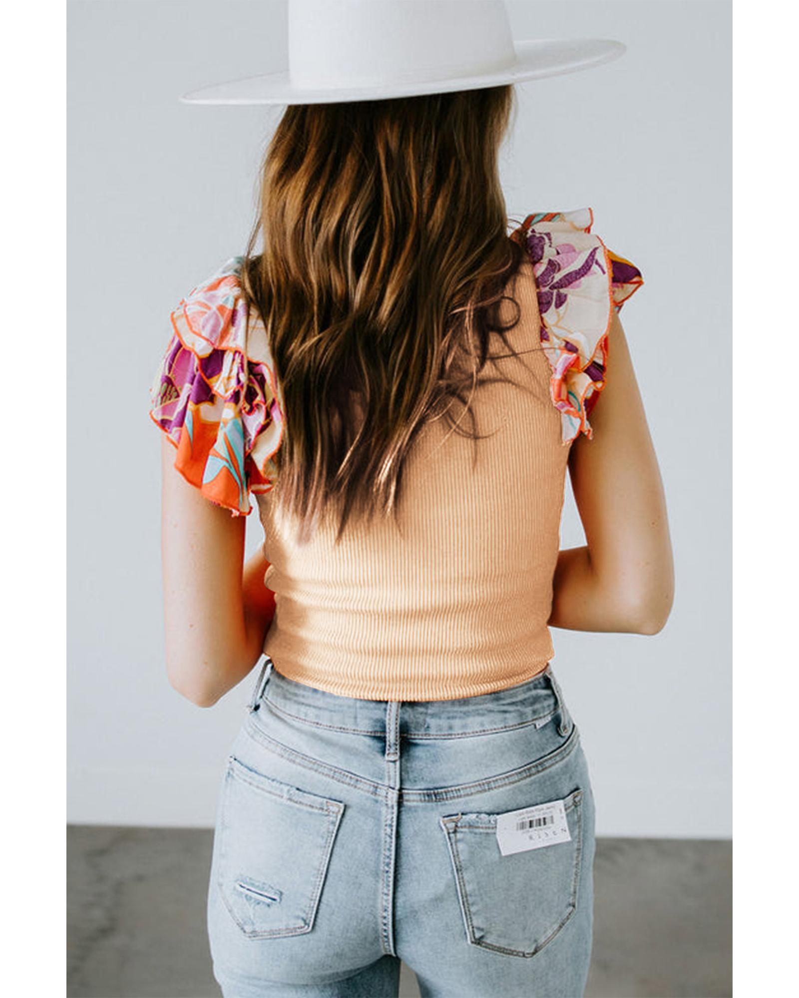 - Tiered ruffled sleeve design adds a touch of femininity
