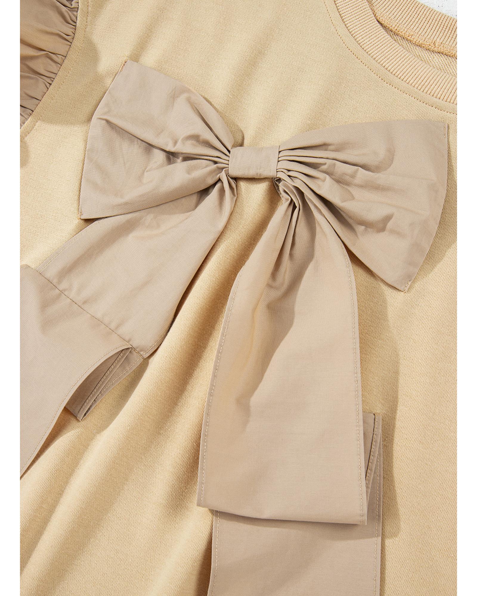 Parchment Ruffled Short Sleeve Bowknot Applique Crew Neck Plus Size Top – 3X