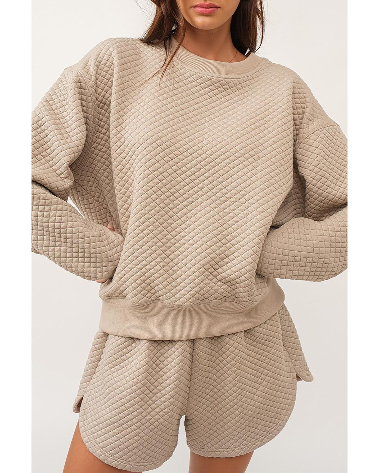 Parchment Solid Color Quilted Long Sleeve Top and Shorts Set – 2XL