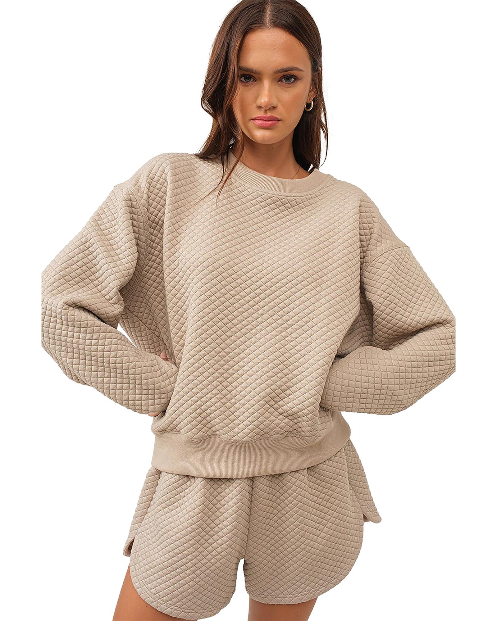 Parchment Solid Color Quilted Long Sleeve Top and Shorts Set – L