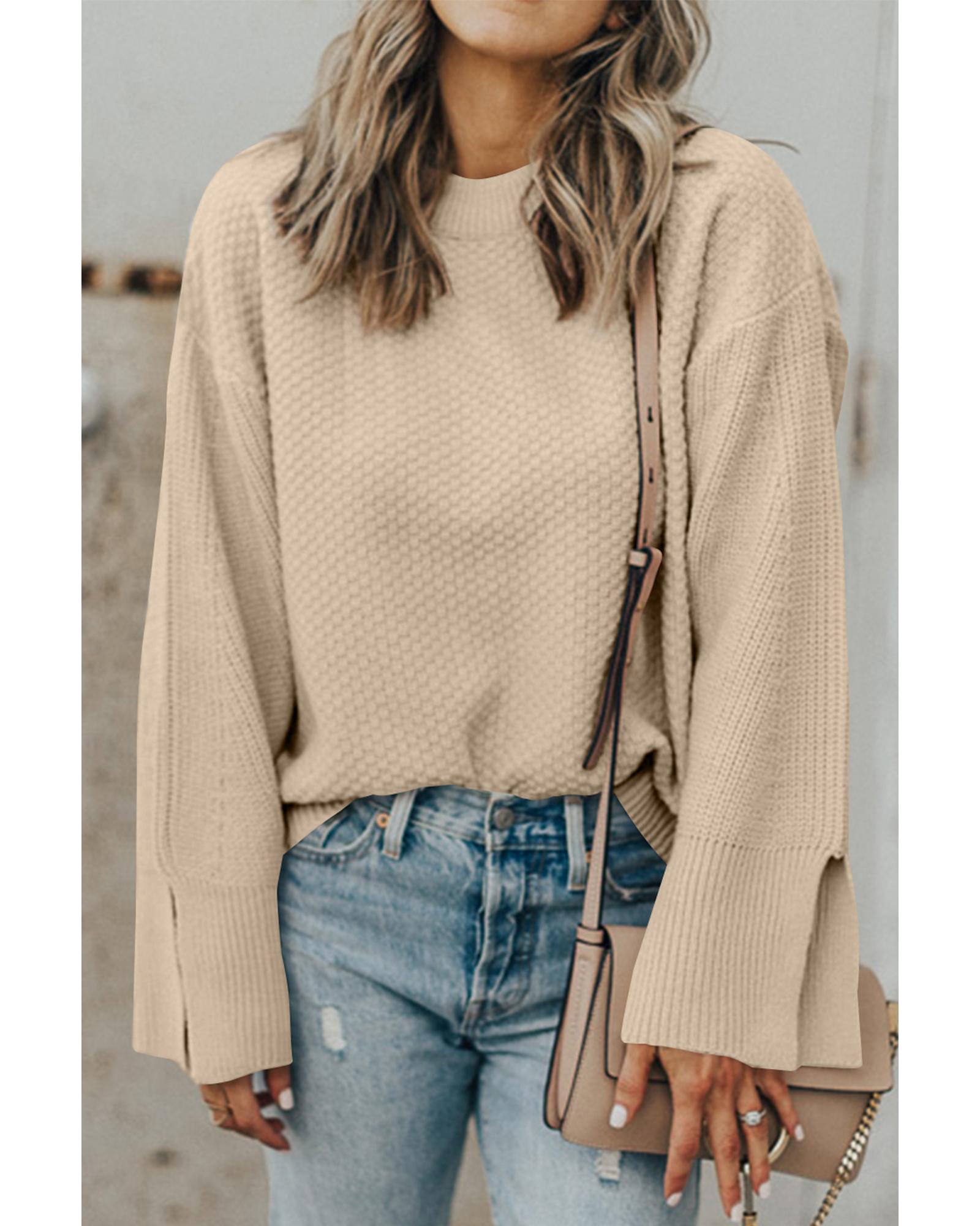 - Parchment Solid Textured Knit Split Cuff Drop Shoulder Loose Sweater