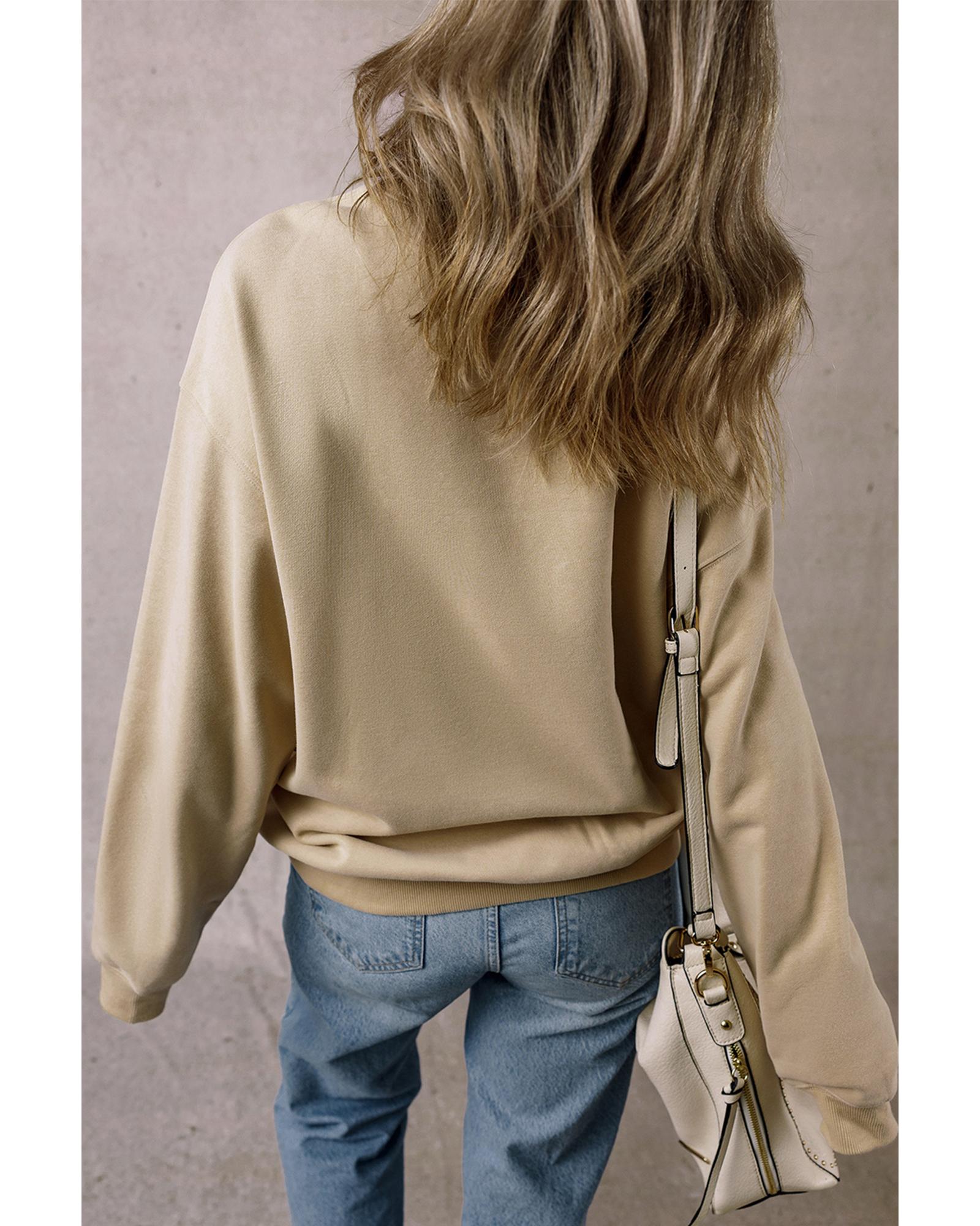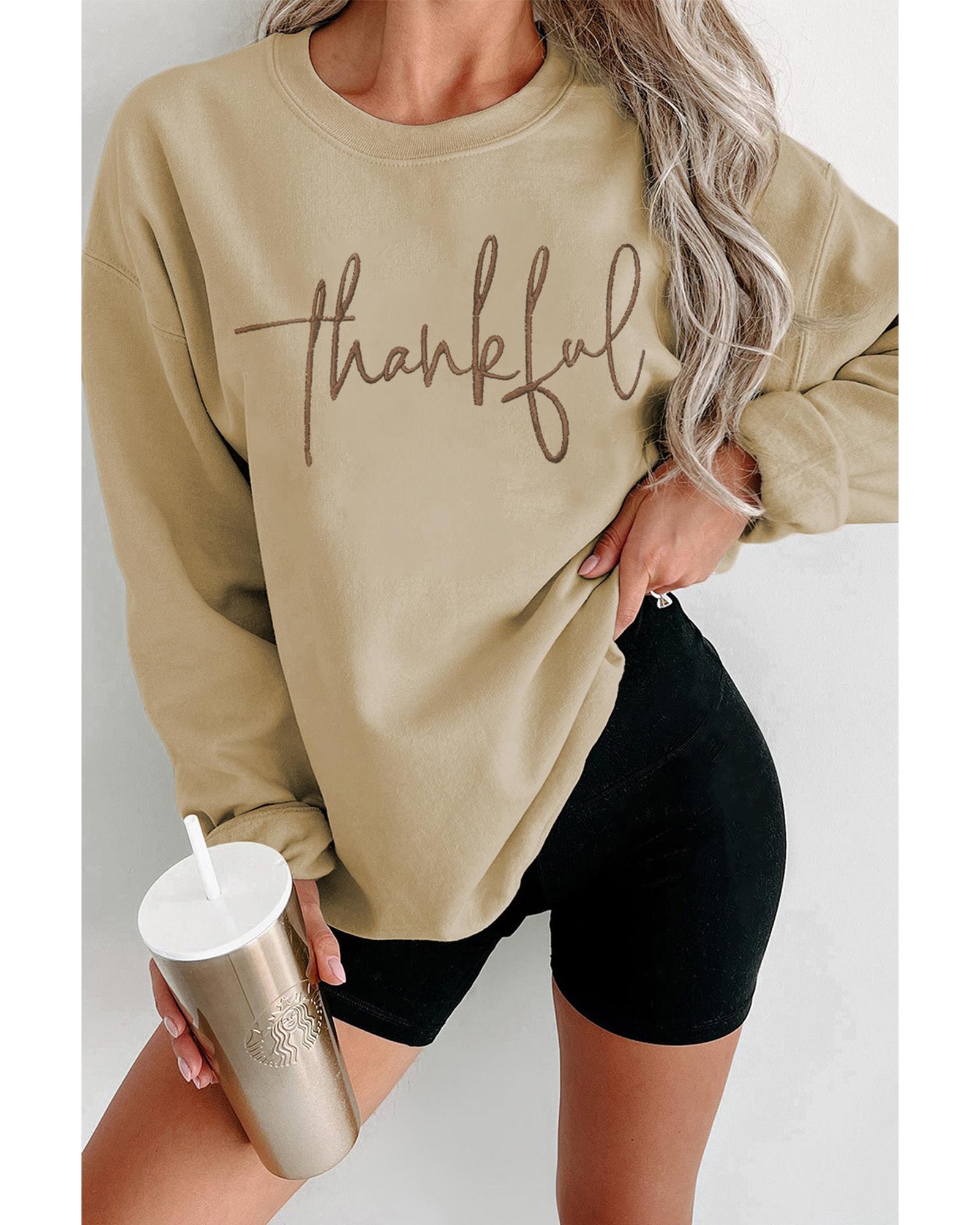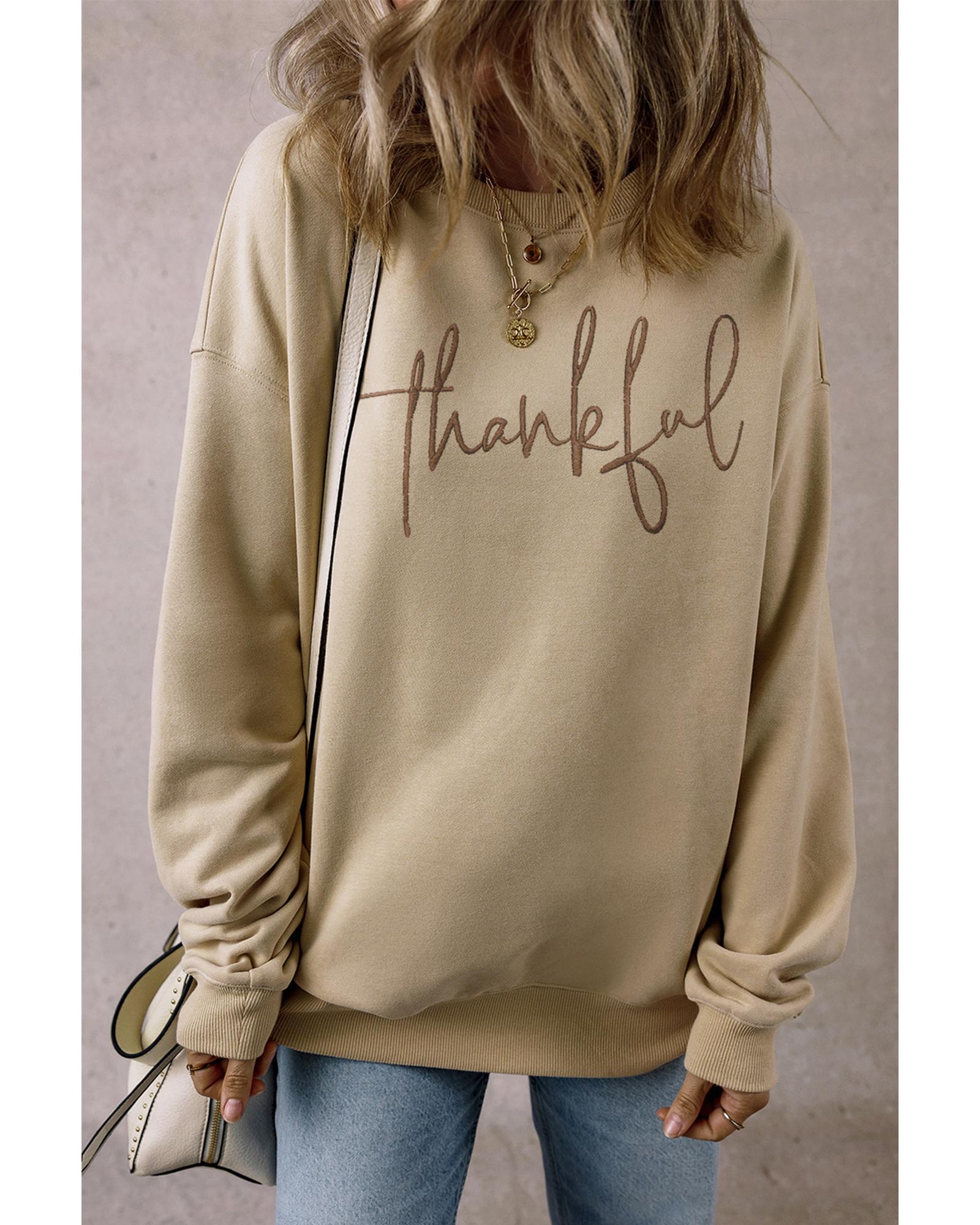 Parchment thankful Embroidered Drop Shoulder Pullover Sweatshirt – S