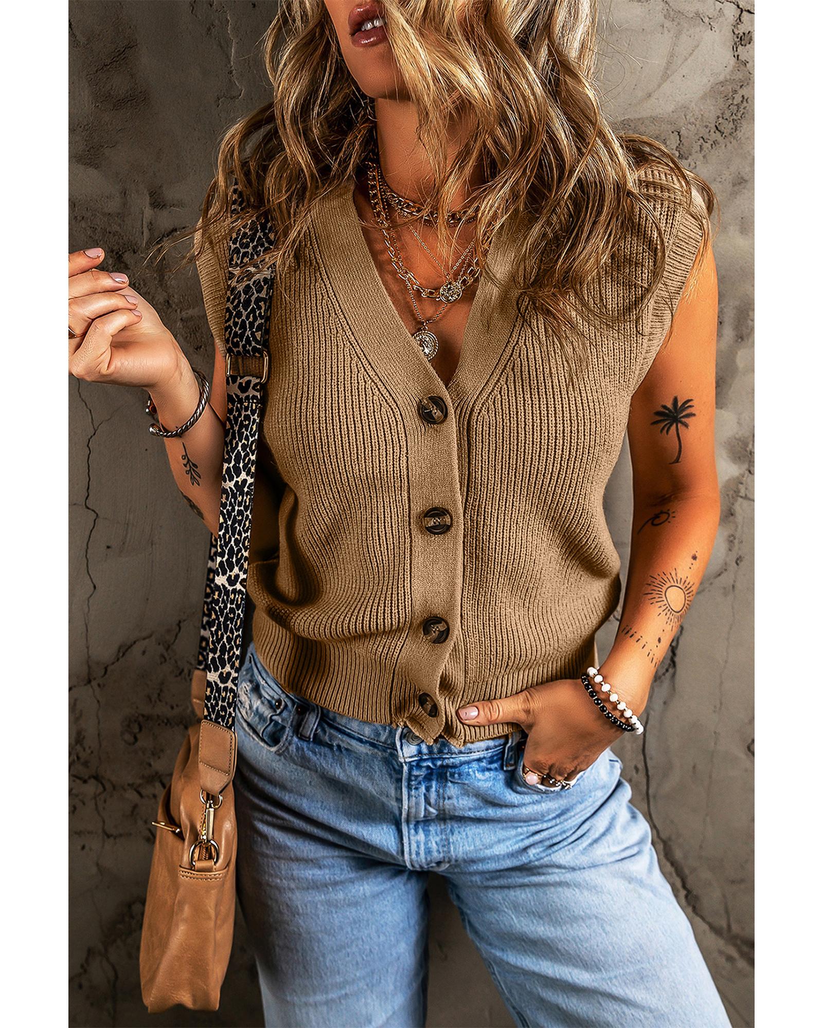 Parchment V Neck Buttoned Front Sweater Vest – M