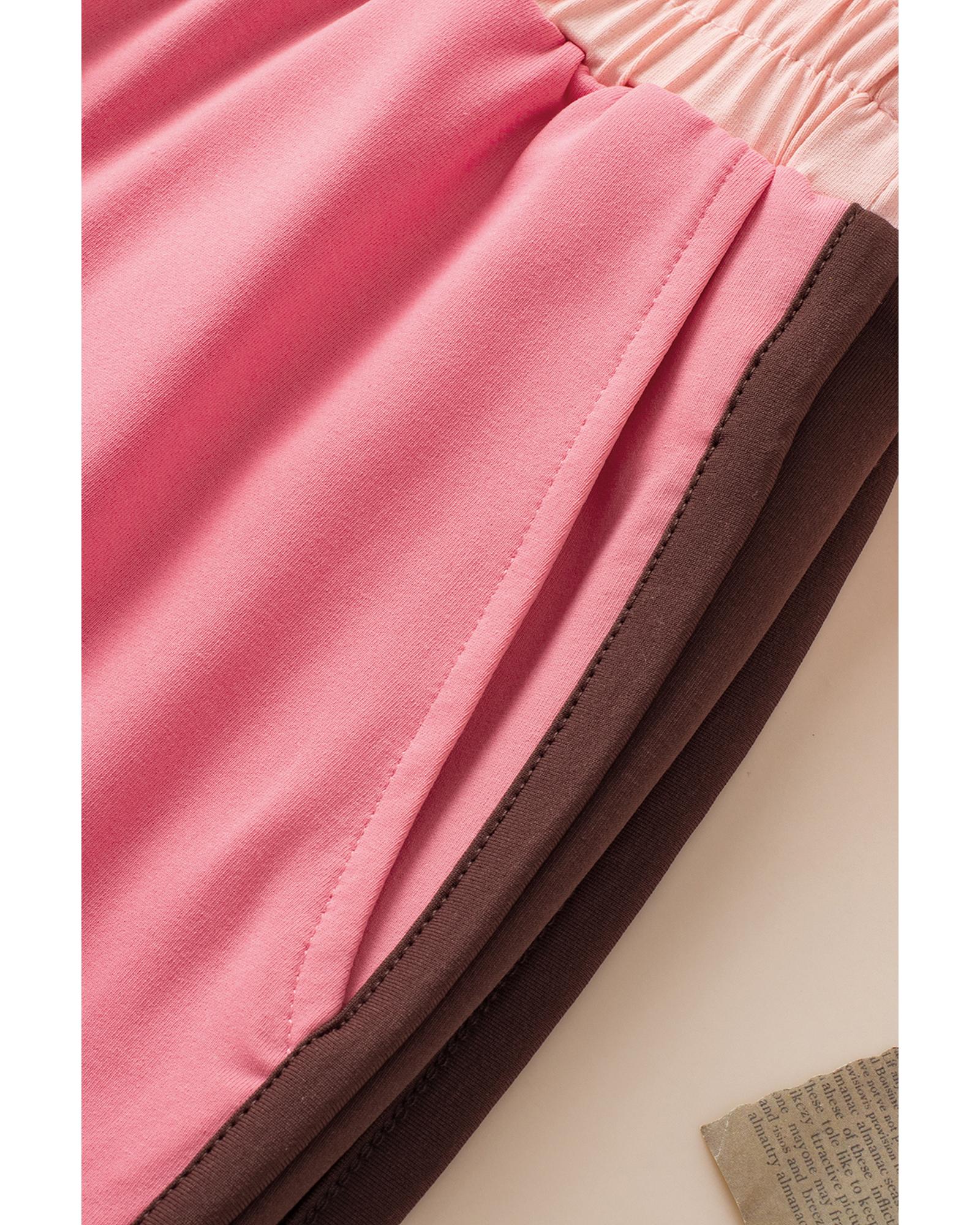 - Peach Blossom Contrast Trim Cap Sleeve Tee Shorts Set