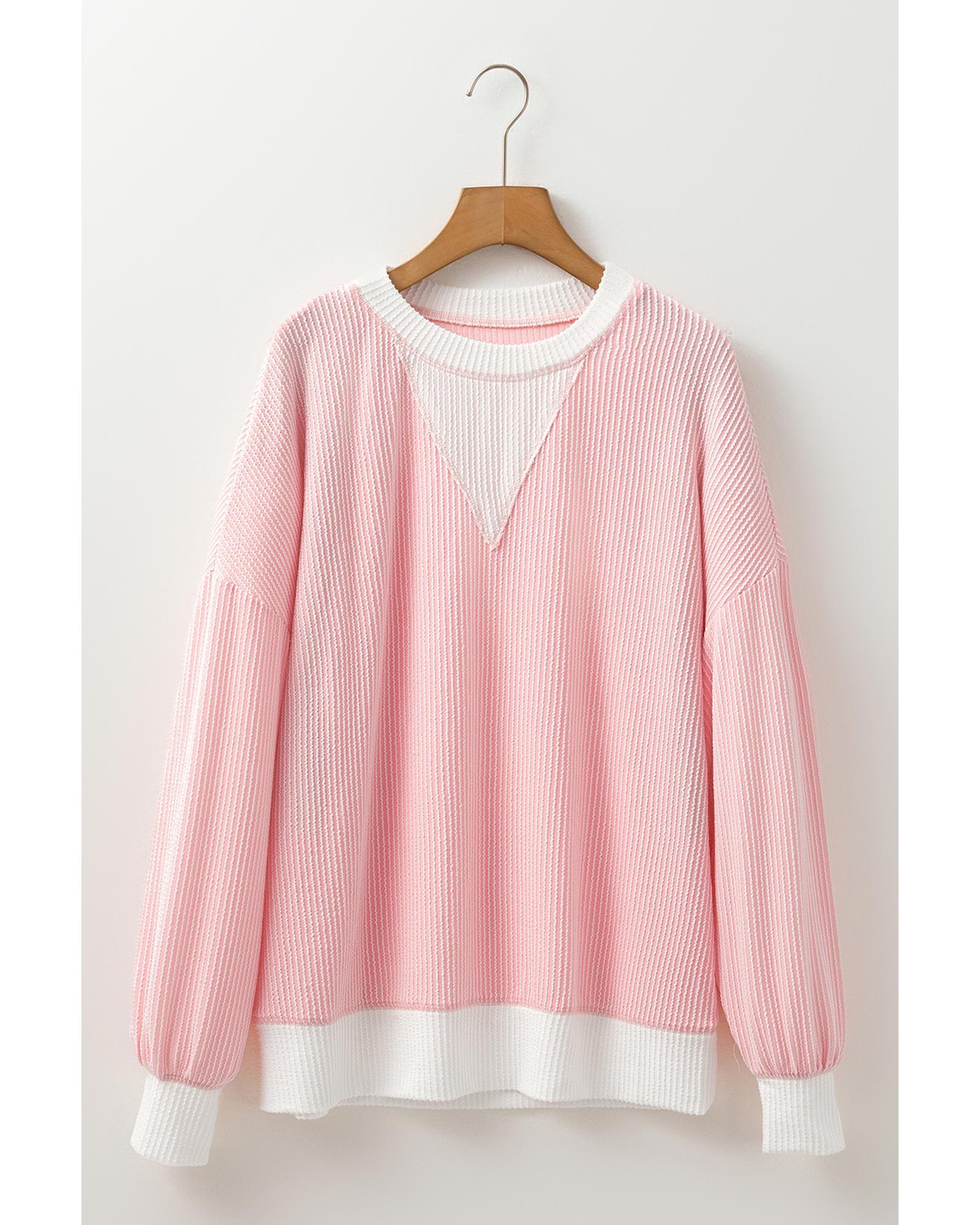 Peach Blossom Corded Colorblock Drop Shoulder Loose Top – S