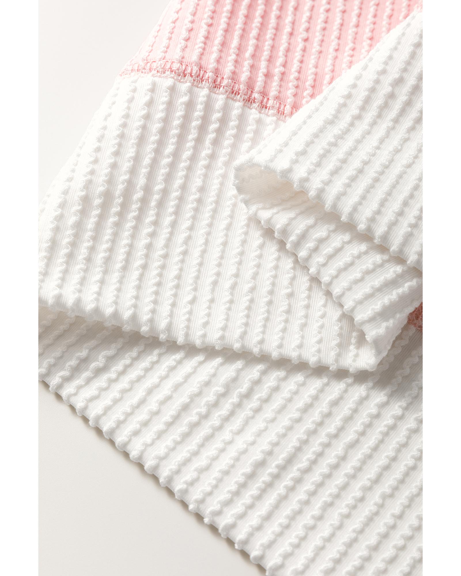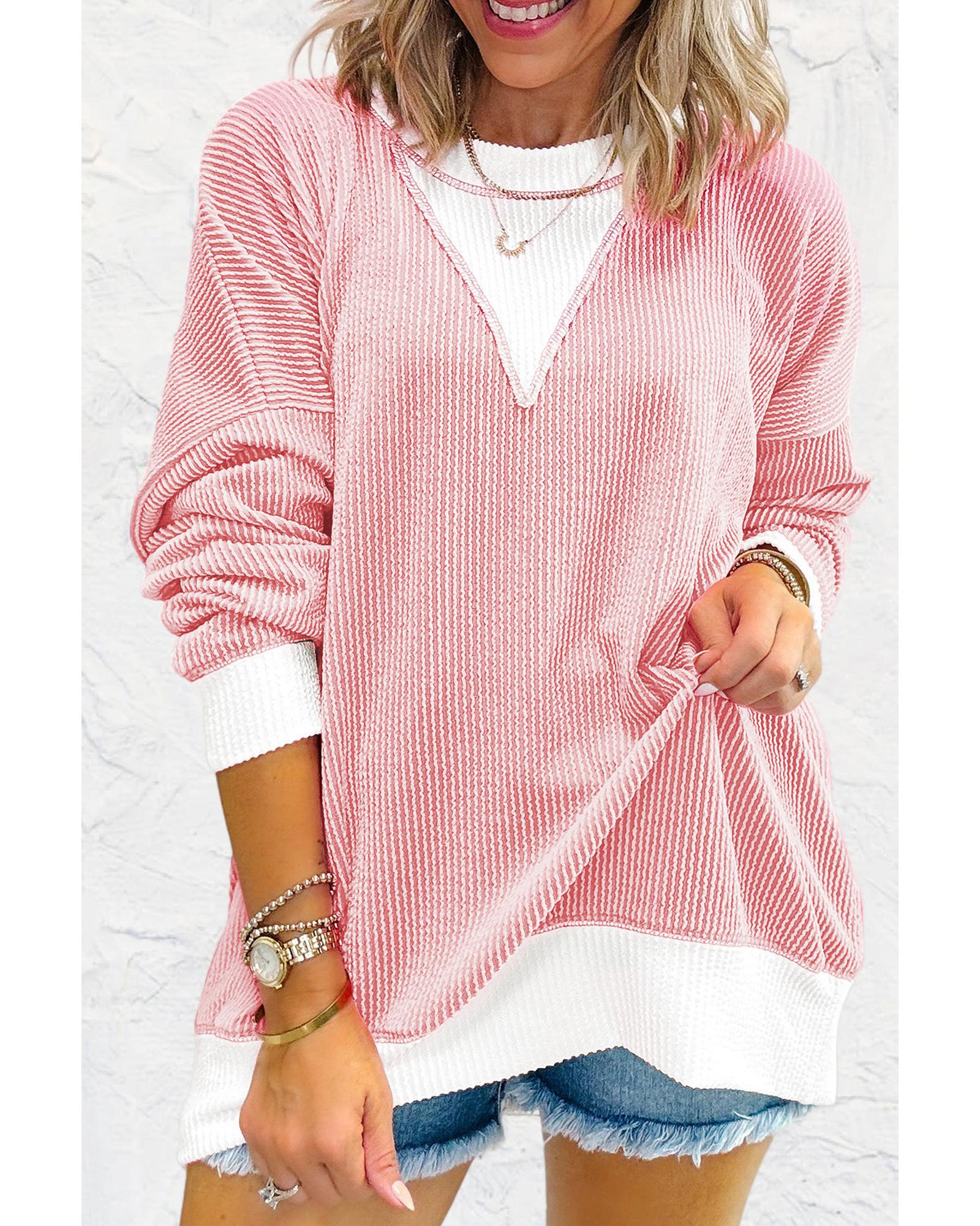 Peach Blossom Corded Colorblock Drop Shoulder Loose Top – XL