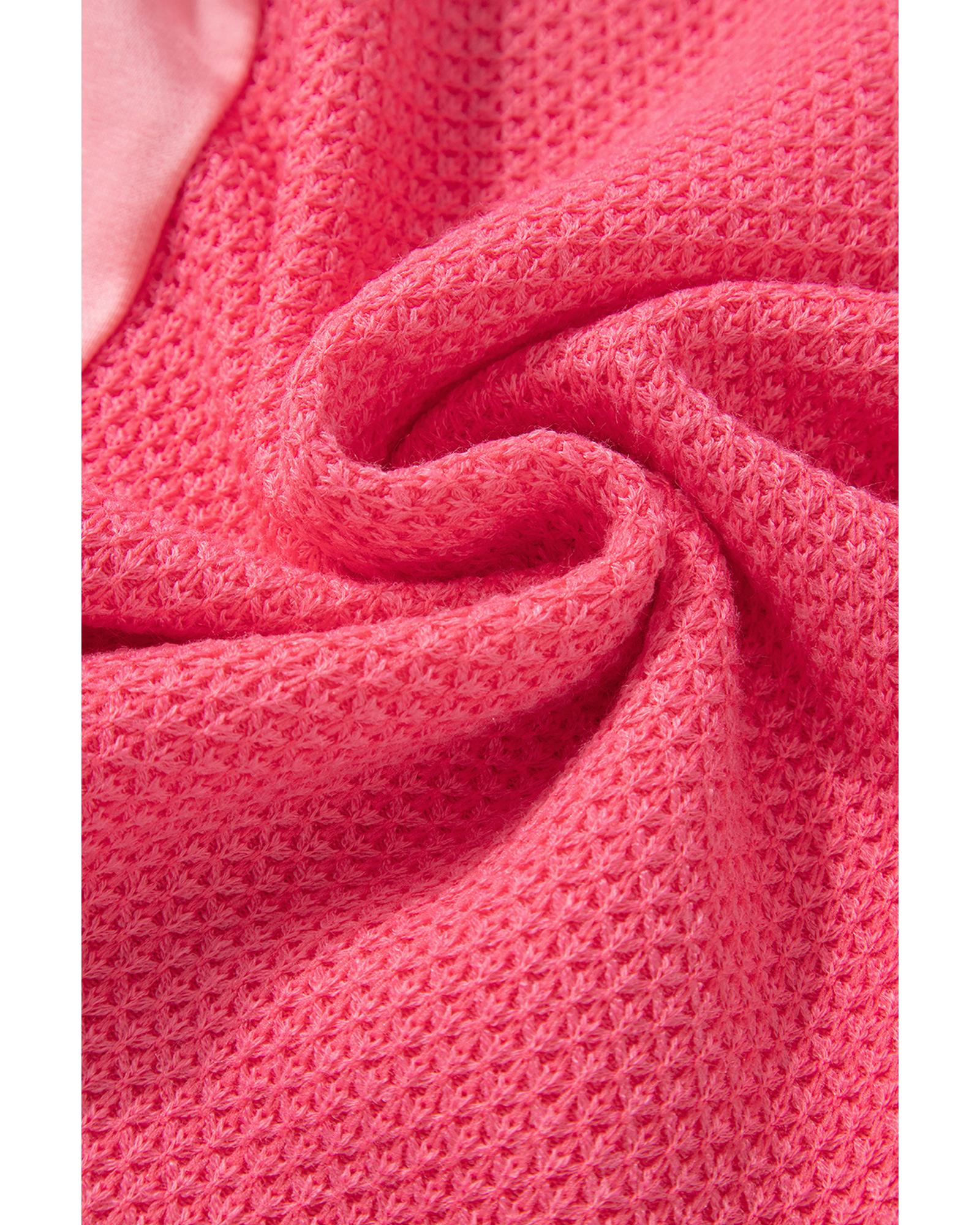 Peach Blossom Two Tone Contrast Waffle Knit Buttoned Loose Shacket – 2XL