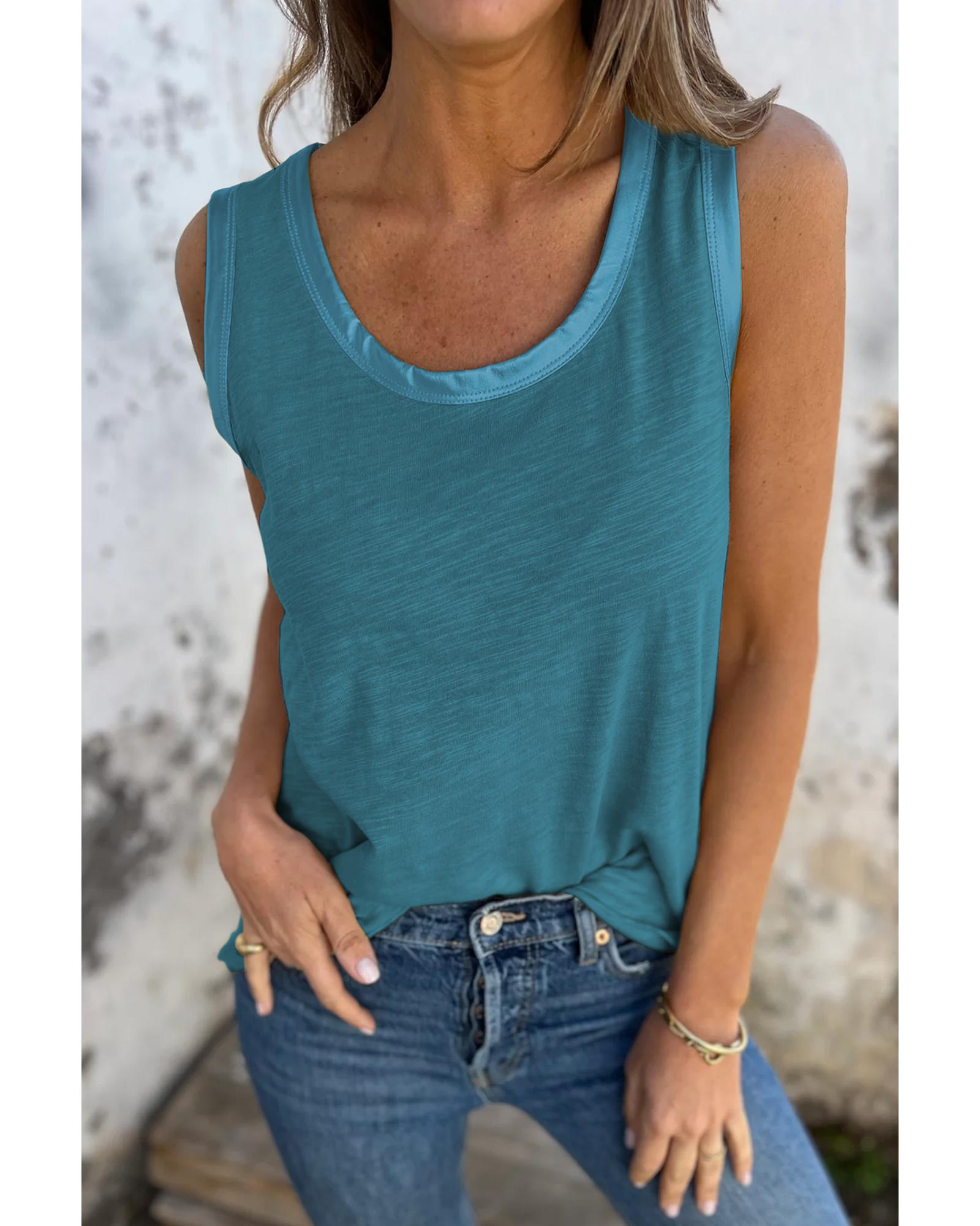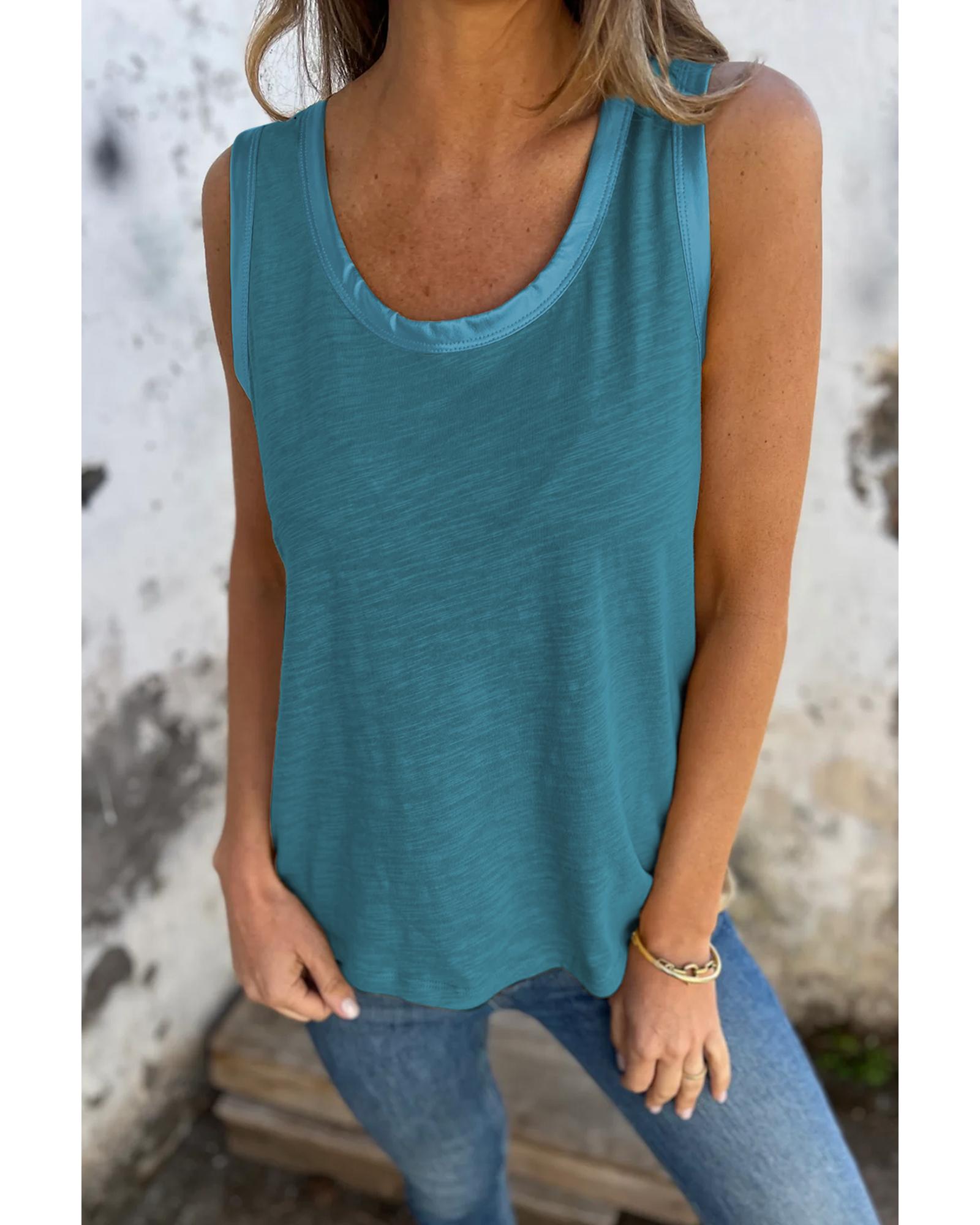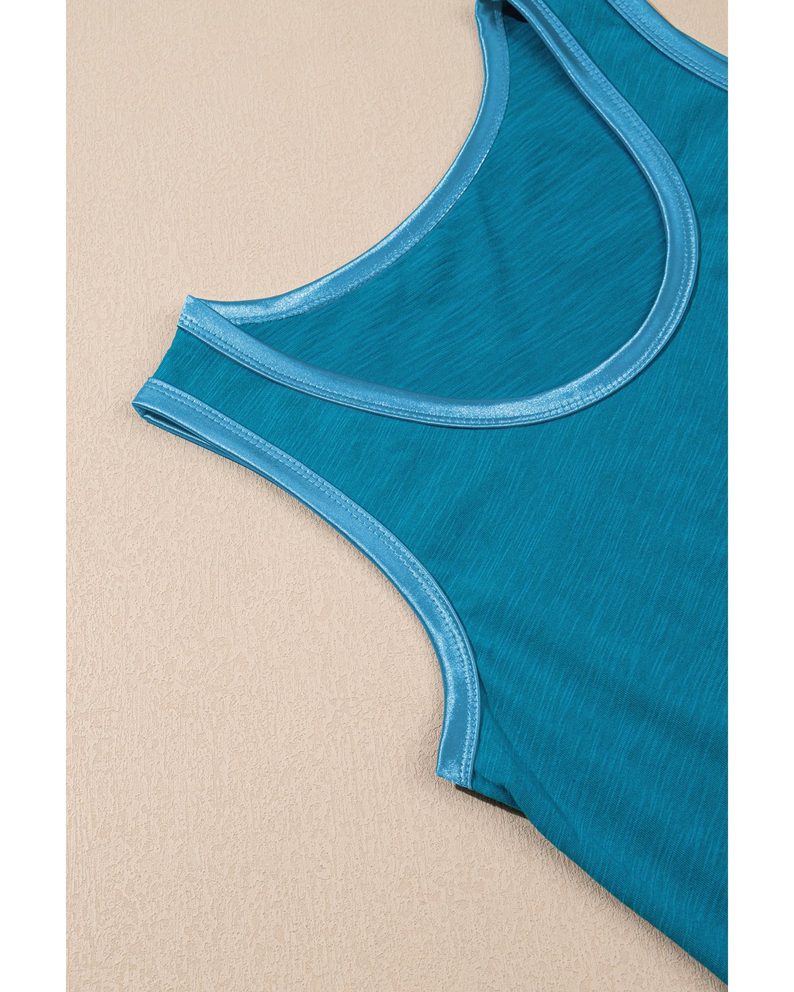Peacock Blue Metallic Sheen Edge Scoop Neck Tank Top – M