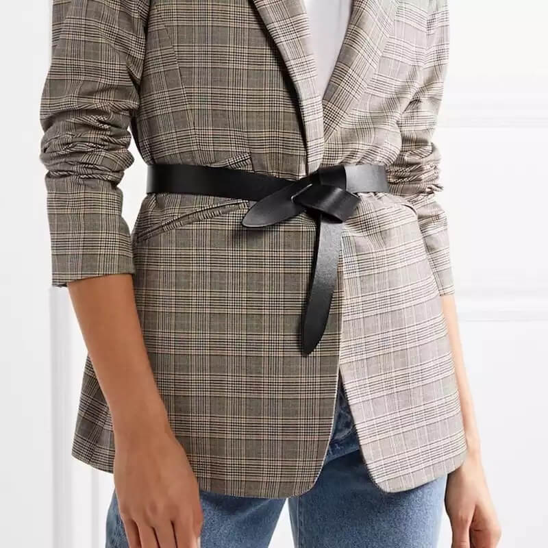 The Arla Black Knot Belt by Peroz Australia brings a vintage elegance to any ensemble. Its full grain leather composition and adaptable knot design offer both a chic look and a versatile fit, making it a timeless addition to any fashion repertoire.