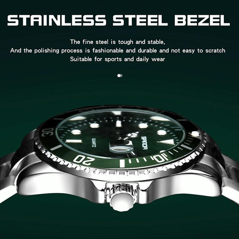 • Sunburst dial design with brushed metal effect for a shining appearance under light
