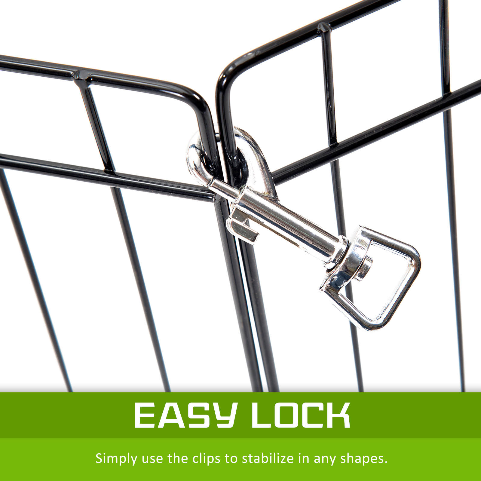 It features as 8 panels for multi-configuration which allows you to turn your playpen into different shapes. Made of durable steel frames construction with black powder coat finish provides Long Lasting Protection and weather resistance. The access door with bolt latches you can be sure that your pet doesn’t have the opportunity to run away and the round edges ensure pet safety.